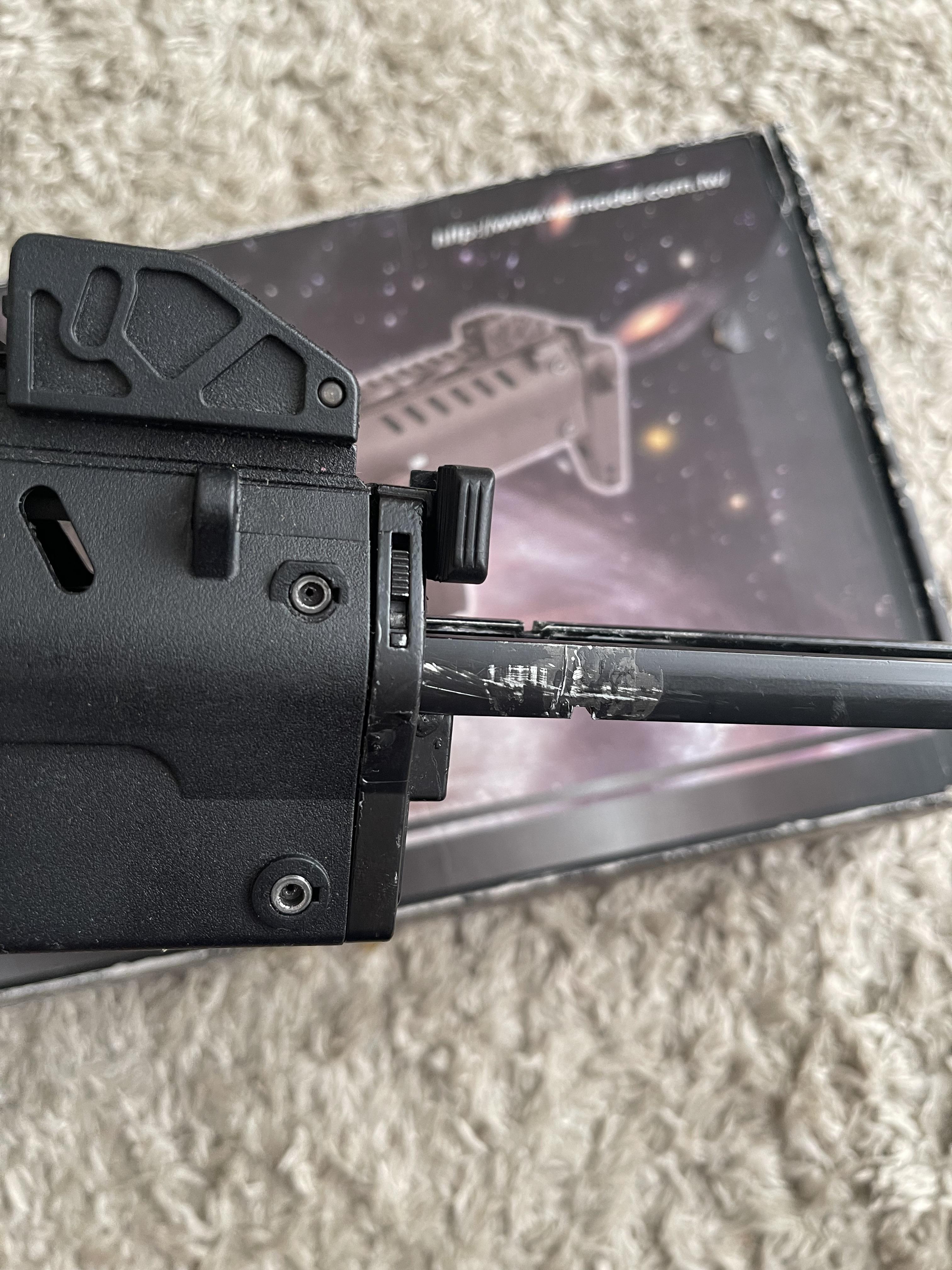 Bone yard WE SMG-8 (MP7). Signs of wear on the stock arms and magazine but in solid shape aside from that. The issue this has is that it will always mag dump as soon as you activate the bolt release. Can only assume this is a sear issue. Flash hider is missing so will include a metal suppressor.