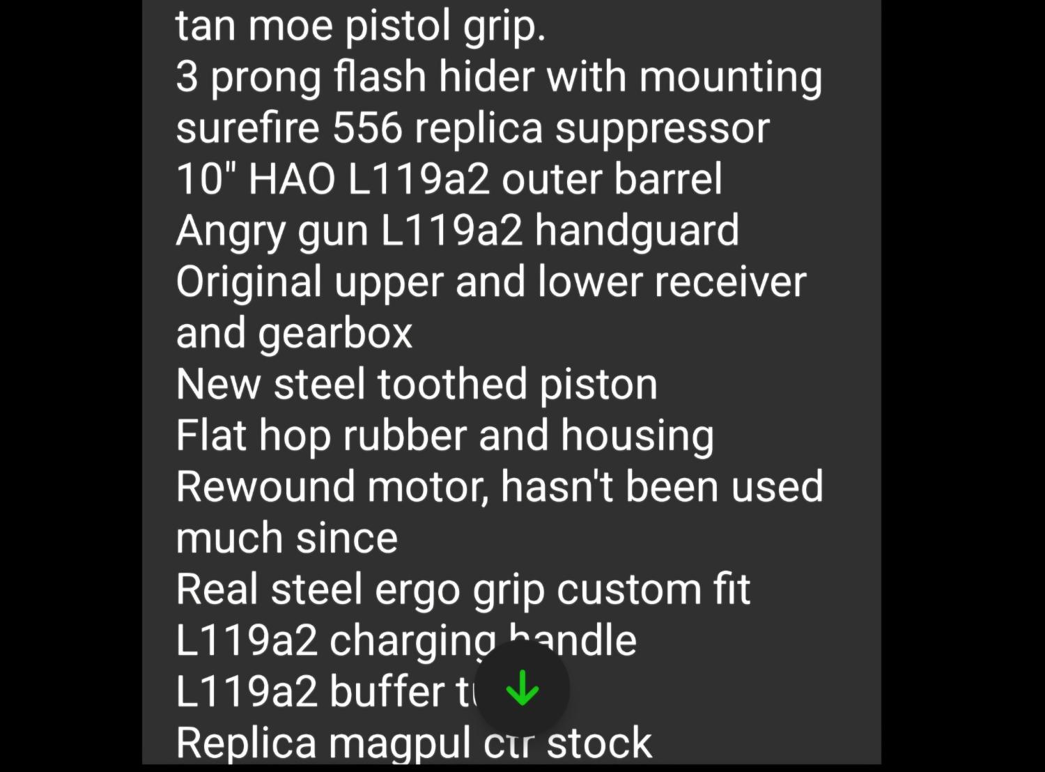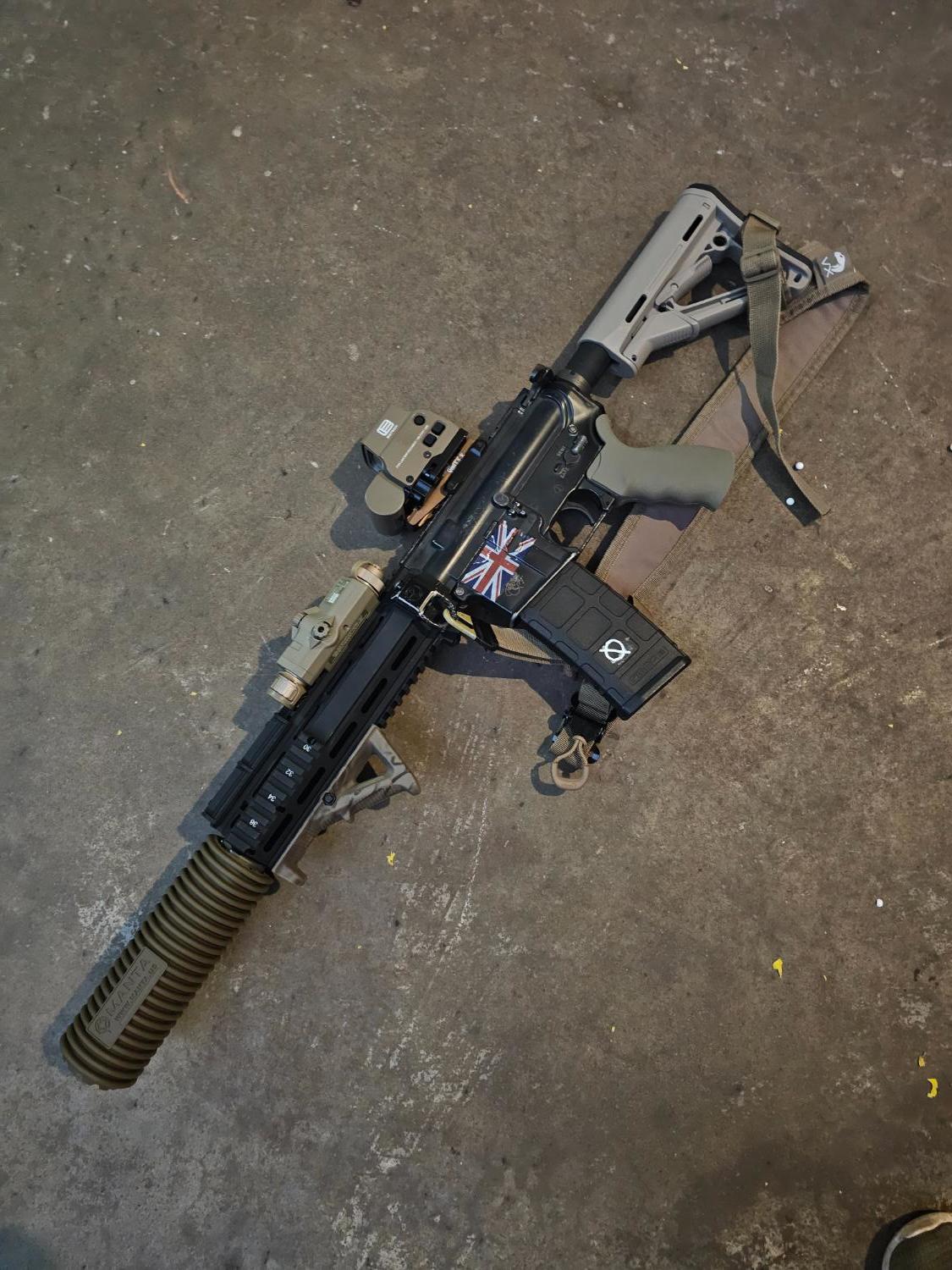 Systema ptw l119a2 Hao rail and barrel rs ergo grip also spare grip if you want to change back spare cylinder and tools has all the bells and whistles apart from trade marks as I didn't want to remove the original markings comes with pmags and a rs converted mag feeds flawlessly and is in perfect condition and other questions feel free to ask ?