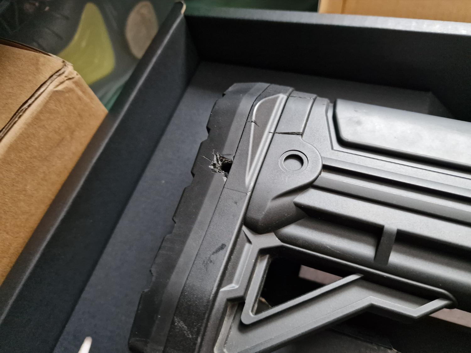 DOESNT COME WITH THE IRON SIGHTS PICTURED. Comes with the electric drum mag, 3 Hi caps, 1 mid cap and a 3d printed battery extension cap! Gun is used and showing signs of use but functions lovely on a big 7.4! Has had a hole made in the side of the buttplate in case you want to run an external battery. Gun is stock. Will ship for a fee