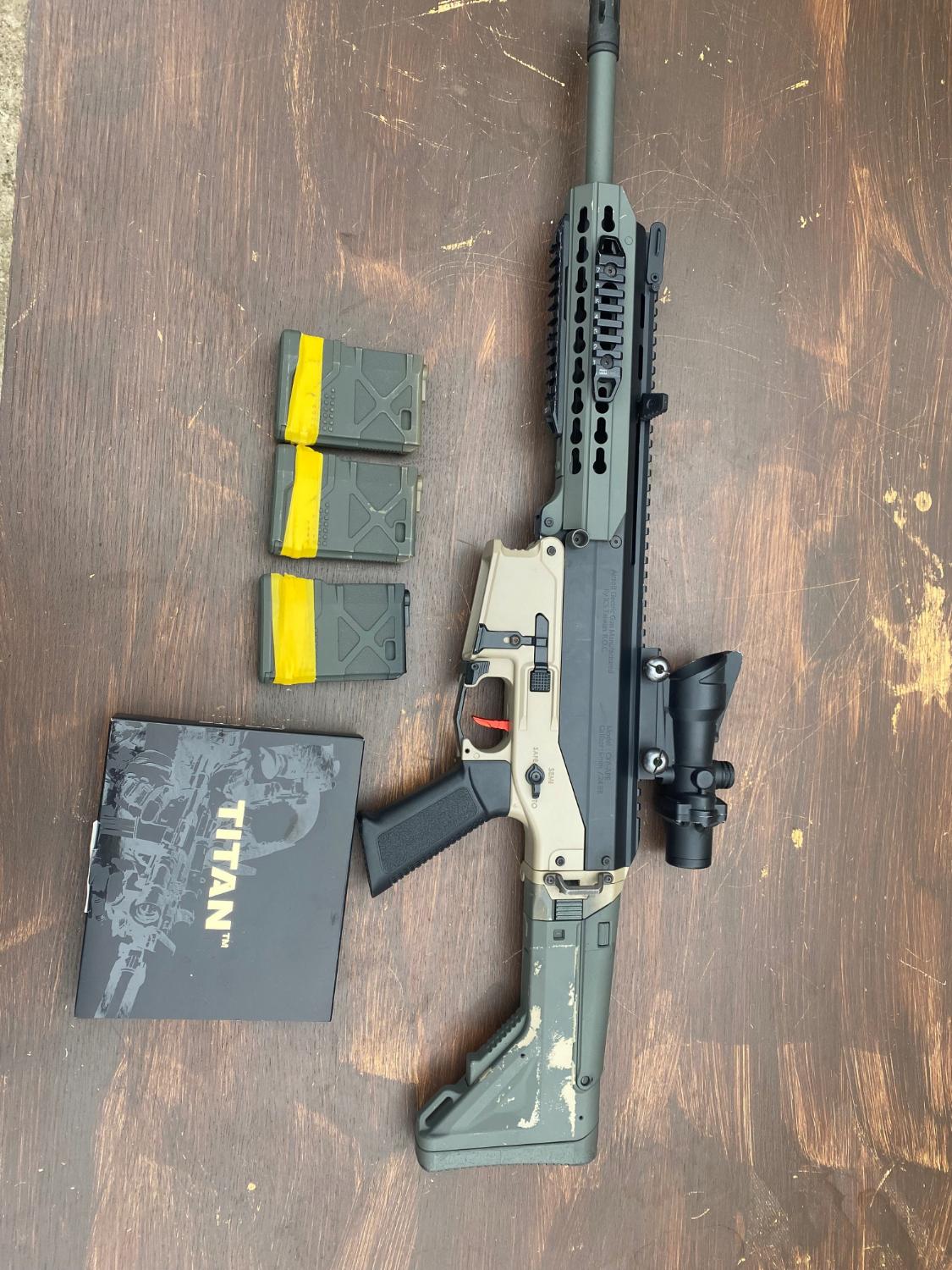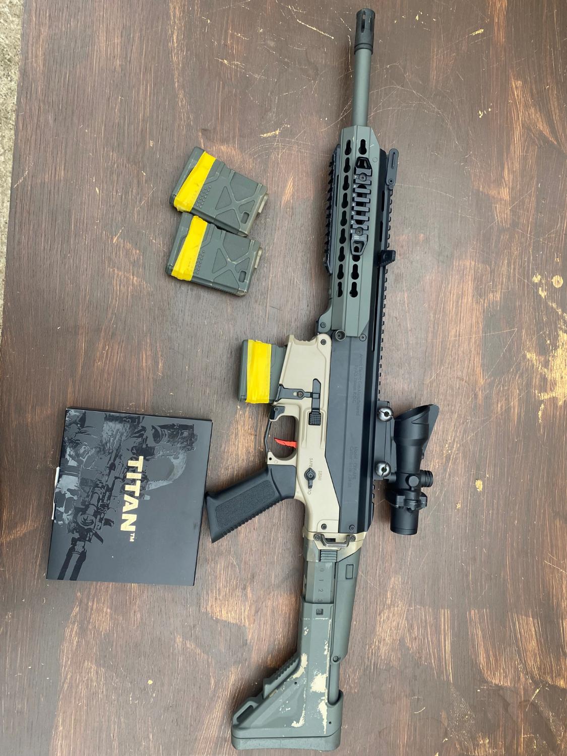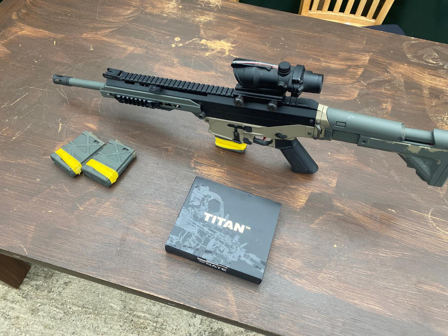 Gate Titan V2 - ( Locked to single with 1 second shot delay) - Could easily be changed back to an AR if the spring is changed.