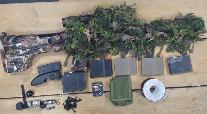I have taken a photo of it chronoing on 0.45 BLS bbs. Comes with a selection of spares including a new stalker hop unit, complete spare bolt set, left over heavy weight piston parts, original bolt handle, a new Silverback SRS 80 hop rubber and an SRS to VSR mag converter (It needs a little bit of material removed to fit different branded magazines). Also comes with Jack Pyke tape and a SGC multi season ghillie wrap. Letting it go due to me moving over to GBBR playstyle. The price includes PayPal fees and shipping.