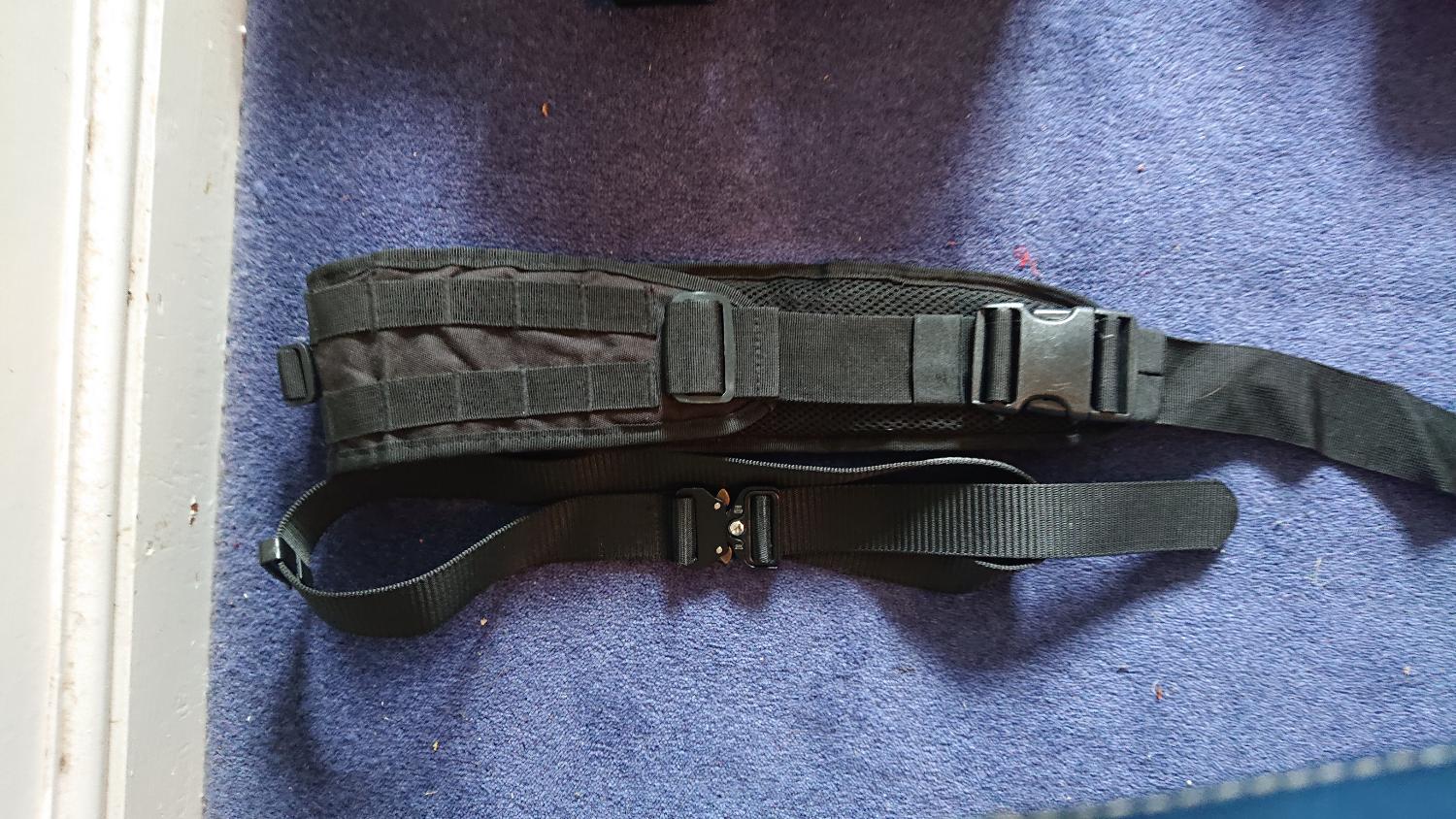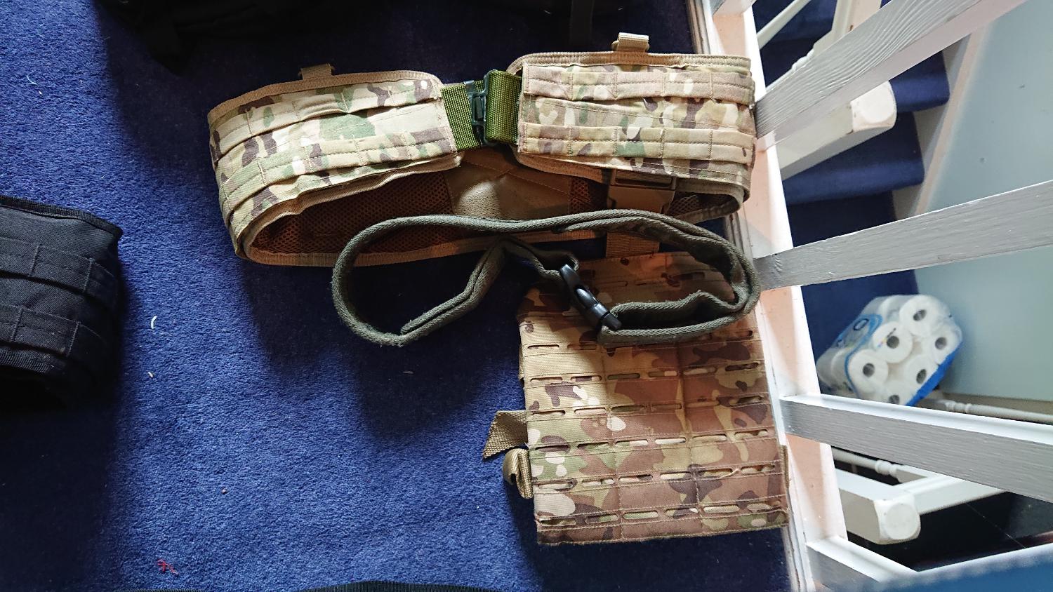 13- unbranded multicam battle belt with drop leg molle panel. Currently has a milsurp webbing belt in it but ive included the normal belt. £12
