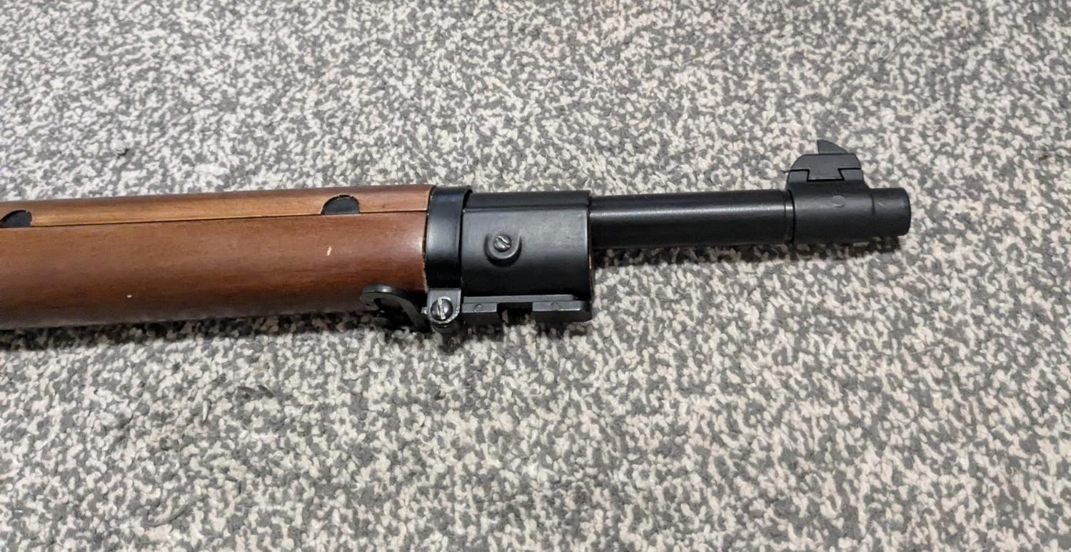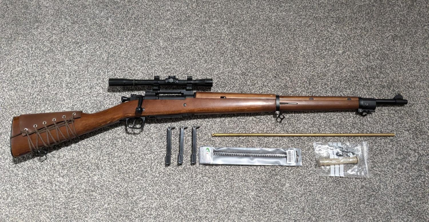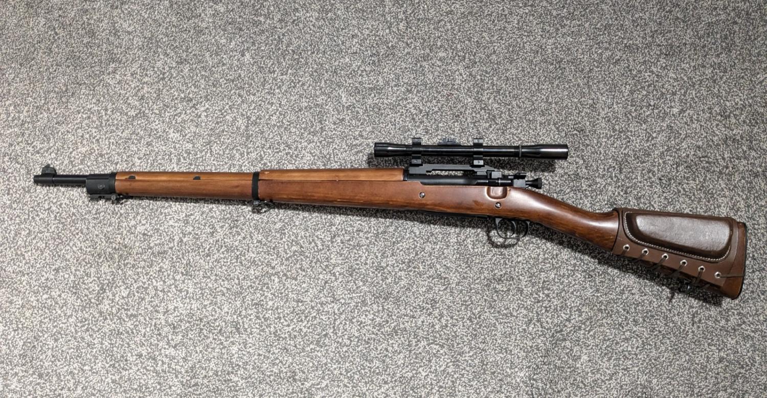 This is an S&T M1903 Springfield rifle fitted with a Parker-Hale branded 3x scope. It's in good all round shape, the finish on the wooden stock has been slightly polished and darkened to make it look and feel better than the standard matte finish. Some marks from skirmishing but overall this has had fairly light use. Internal mods as follows: