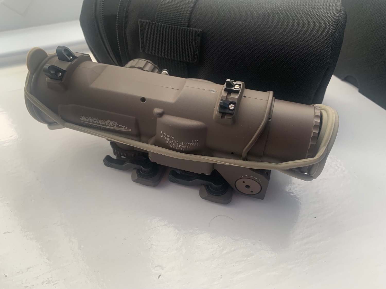 Elcan Spectre DR 1-4x replica from Holy Warrior. Brand new, unused. Comes in its box, with a pouch and metal killflash that should definitely stop BBs. Great for MK18 or M4A1 SOPMOD builds.