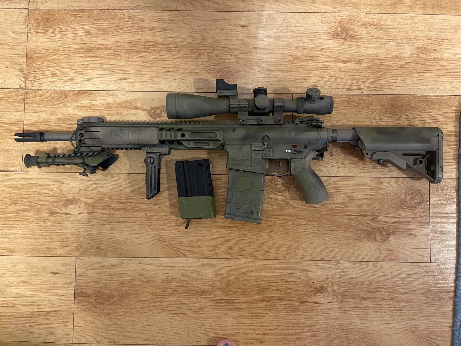 Cyma electronic trigger , quick change spring base model with Dave’s custom Airsoft L129a1 kit.