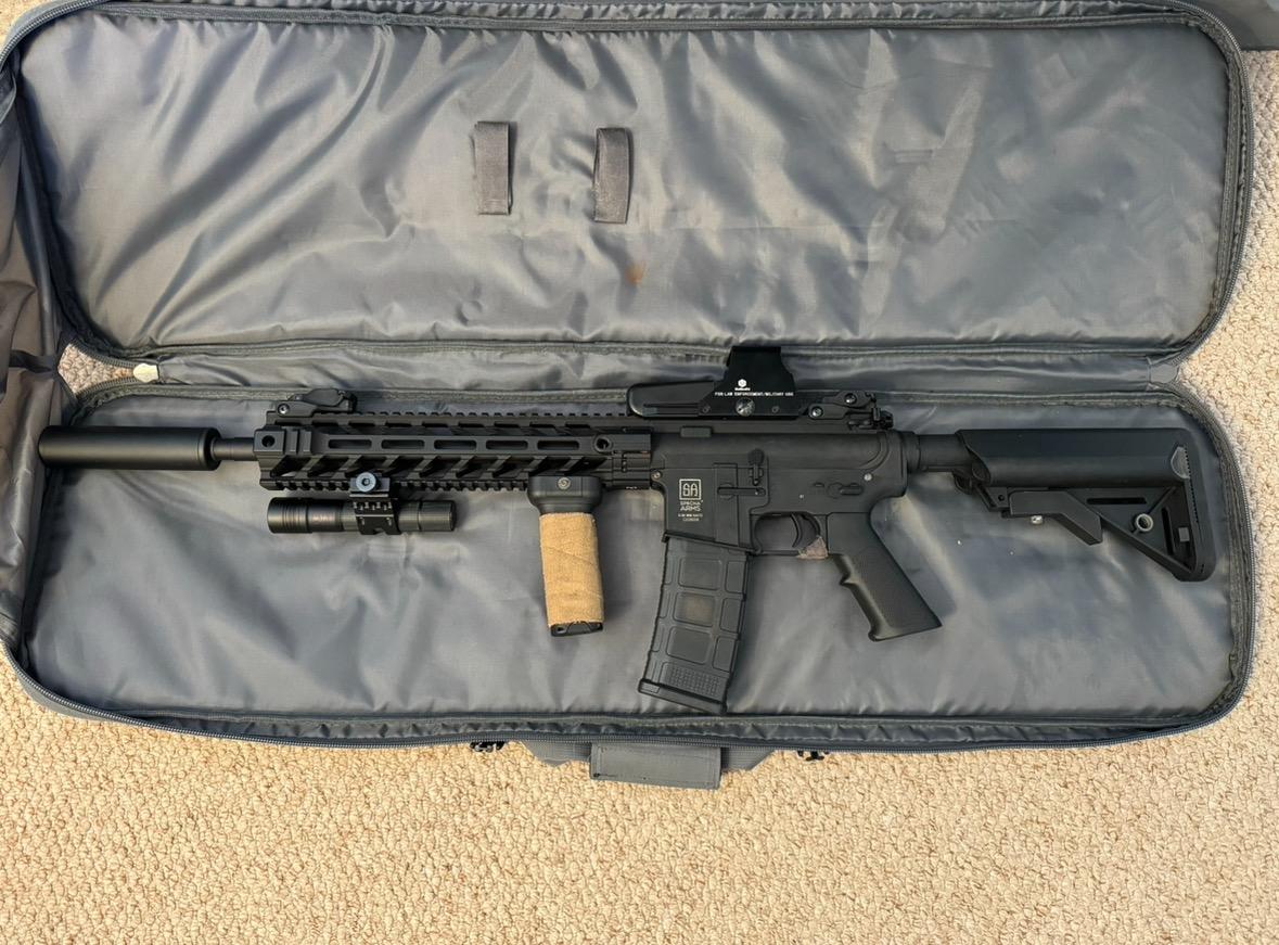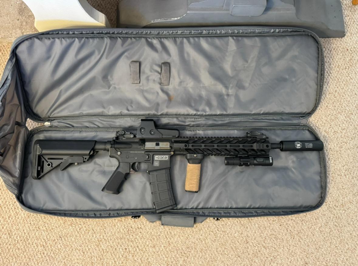 Only selling due to buying a TM 416. It’s a Specna Arms SA-C15 Core but has been upgraded to a DMR and is currently running around 430fps. These are quick change springs and will have the original included so can easily be put back to 350fps. The mosfet has been programmed to semi only but very easy to change using the fire selector.