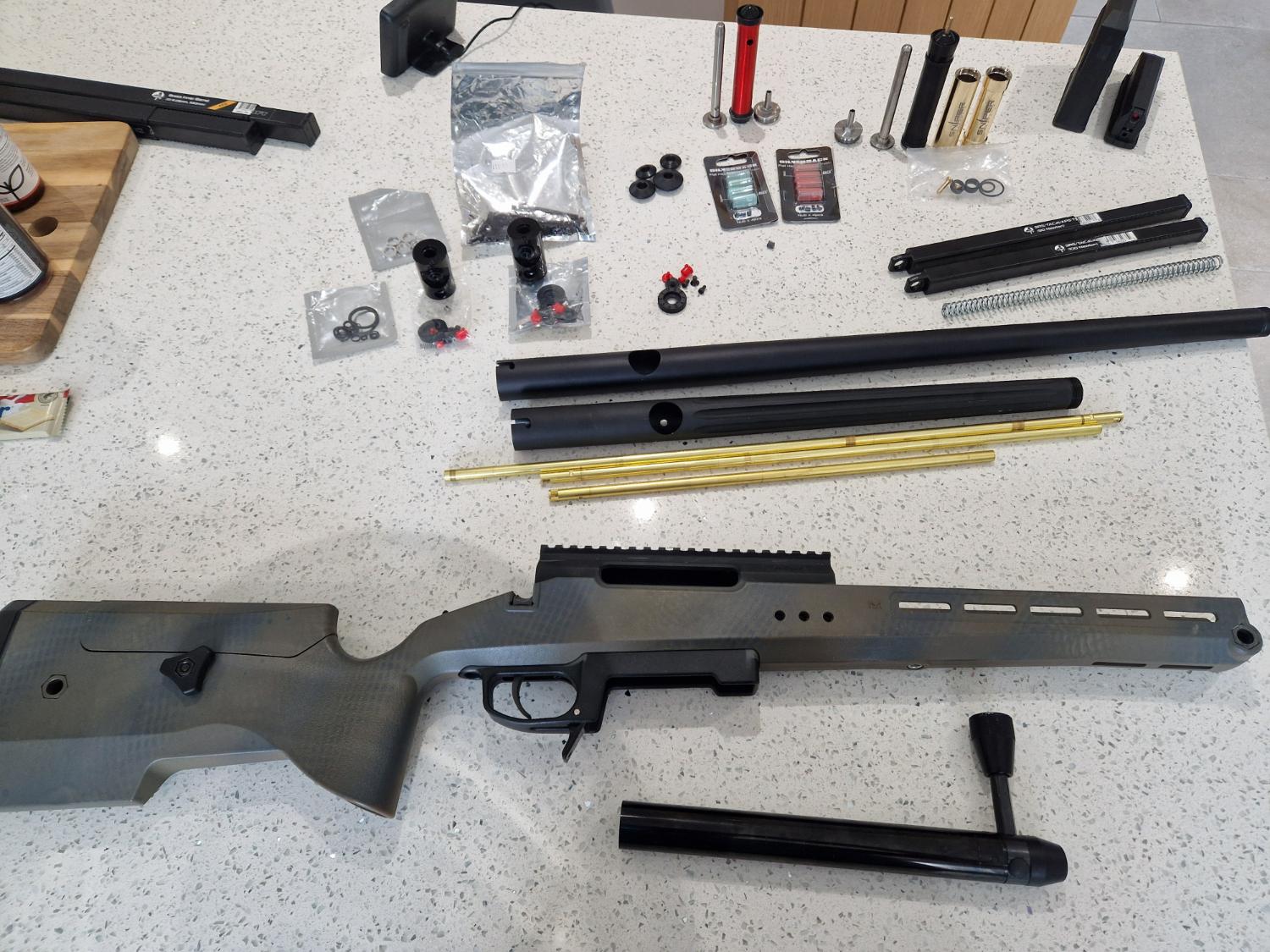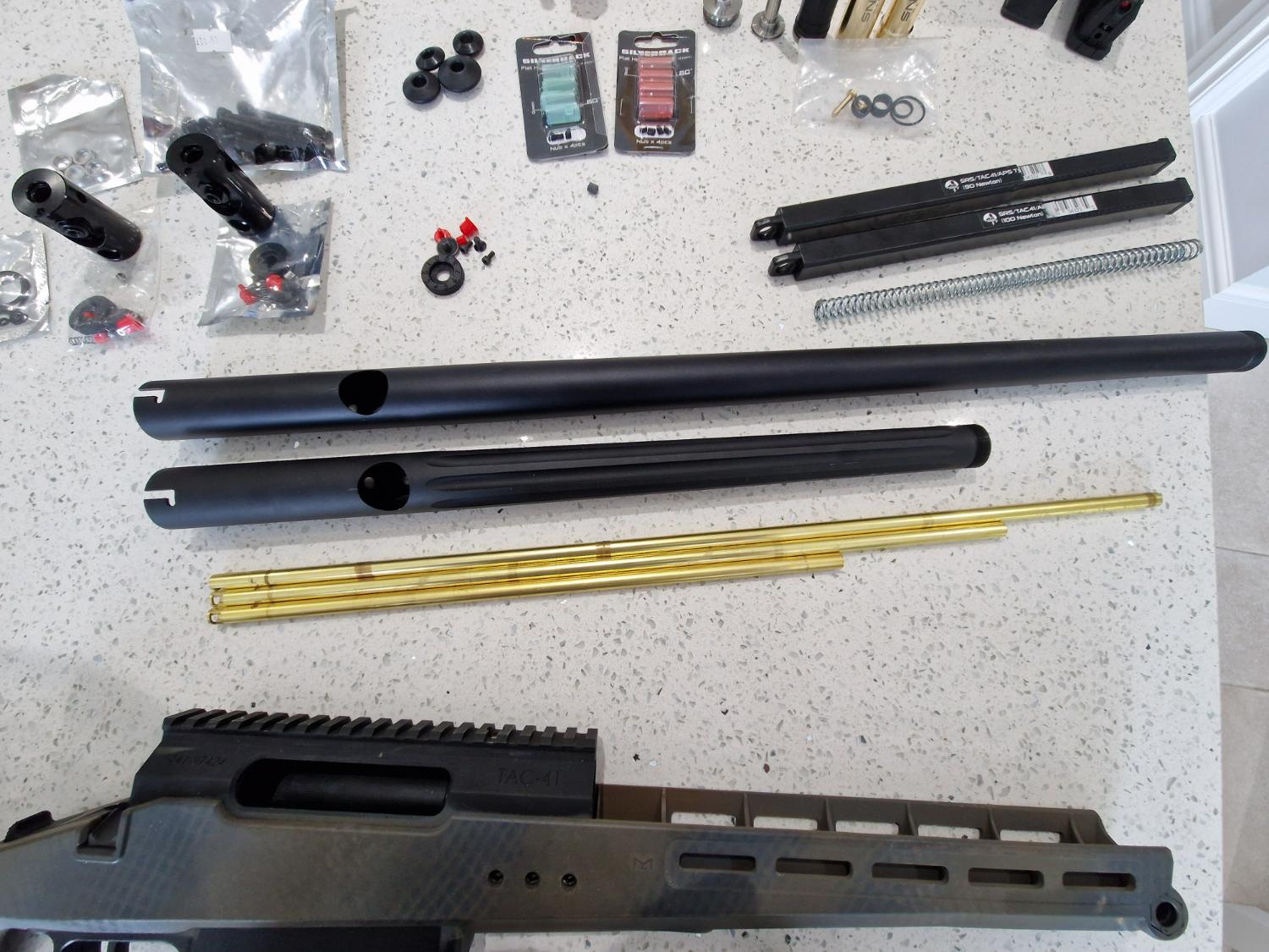 x2 out barrels, standard to fit the 520mm inner barrel and a fluted barrel to fit the 320mm inner or the 410 inner will work if you run into a suppressor which is what i used to do.