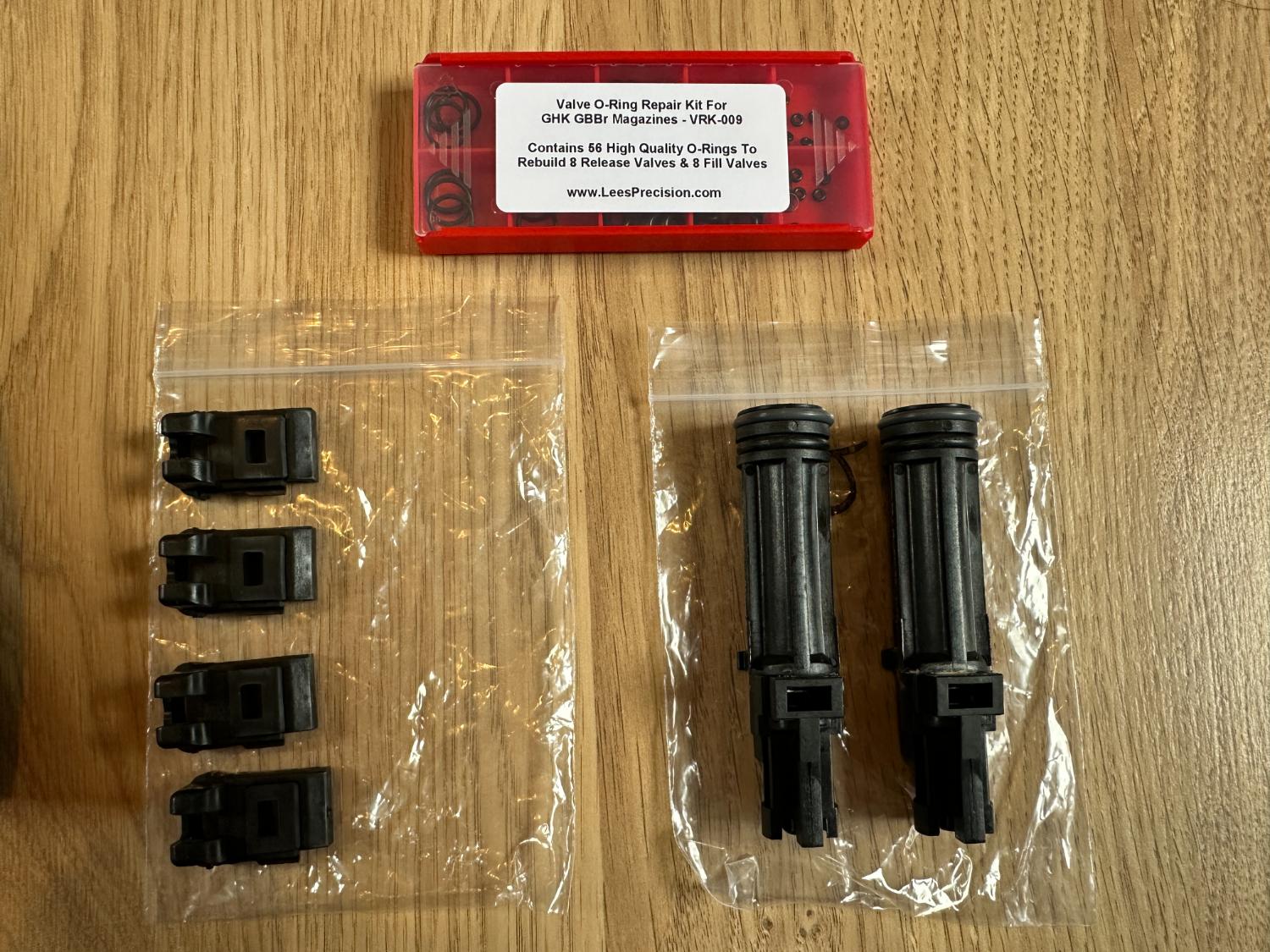 Accessories: 2x 1 Joule Nozzles, 4x GHK AKM Magazine Feed Lips & Gas Routers & 1x Lees Precision GHK AK G5 M4 Magazine O Ring Repair Kit (all included with rifle) / 4x Magazines (priced & posted separately)