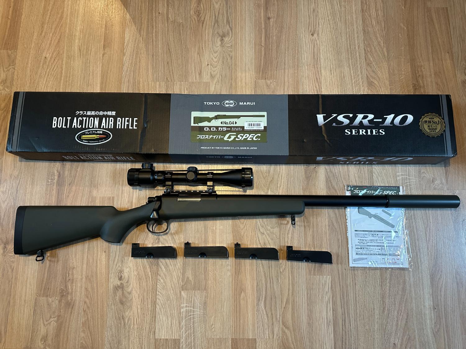 Tokyo Marui VSR-10 G-Spec (Olive) with 4x Magazines & Strike 3-9x40E Rifle Scope