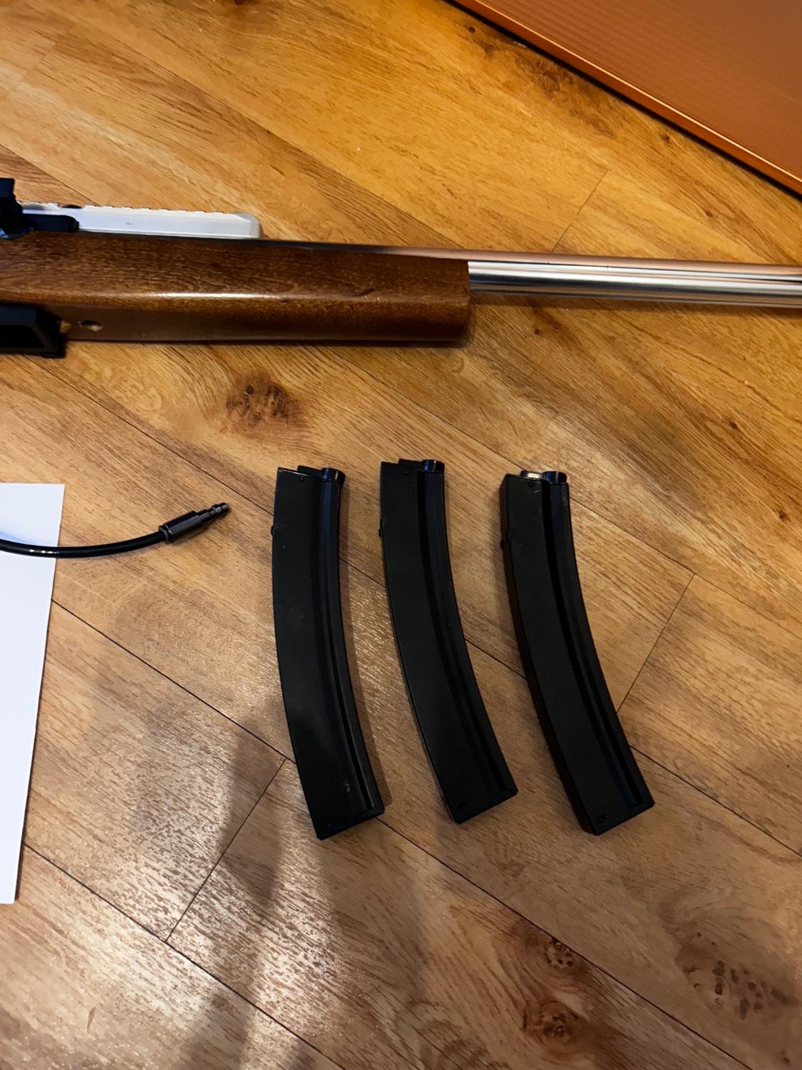 I’m really reluctant to sell this but it was a gun that I got with the hopes of fully upgrading it to make it lever action. However I need the funds due to other guns breaking on me. Listed is a KJW kc02 with some internal upgrades from rogueworx which are, aluminium bolt carrier, rogueworx charging handle, upgraded nozzle spring, it also has a Wii tech outer barrel. As well as an upgraded tanukiworks mag adaptor with guarder mag router, maple leaf monster exhaust valve and 3 cyma mp5 mags.