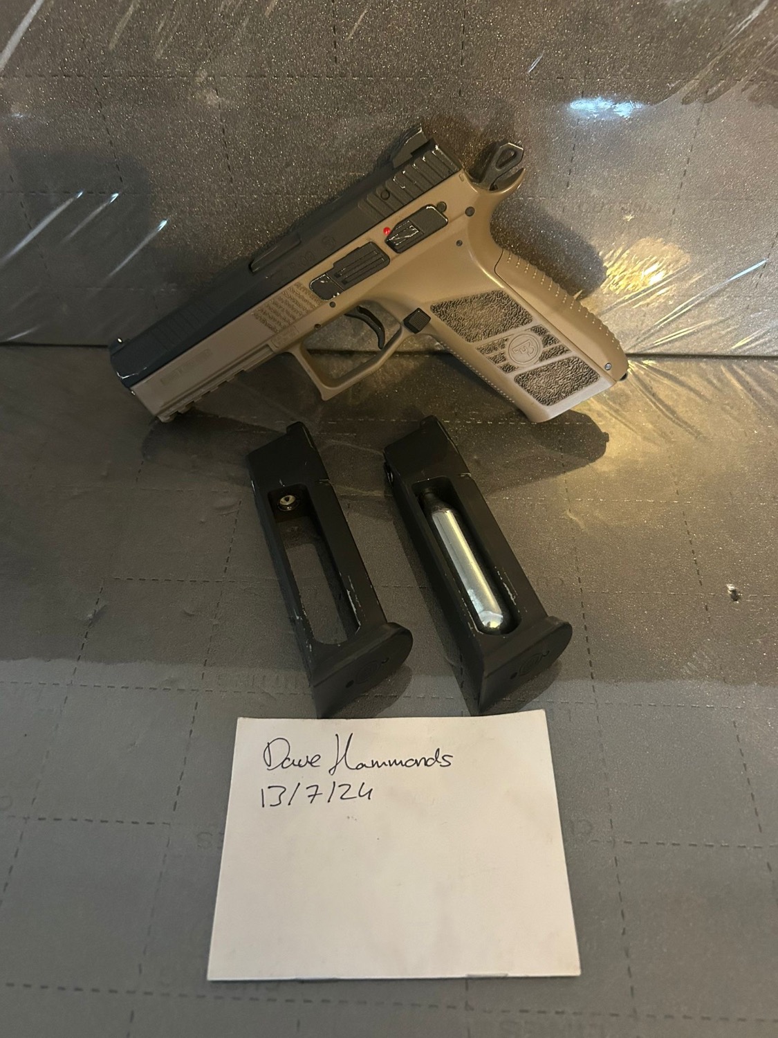 Hi there I’m selling this ASG CZ P-09 on behalf of my mate Dave he has used this pistol and is in great condition few signs of use but works and shoots beautifully comes with a spare magazine both ore Co2 magazines and the kick is amazing lovely feeling pistol he is asking £80 plus postage but open to offers ? any questions email me [email protected] ore text 07530689244 and ill have a chat with Dave for you