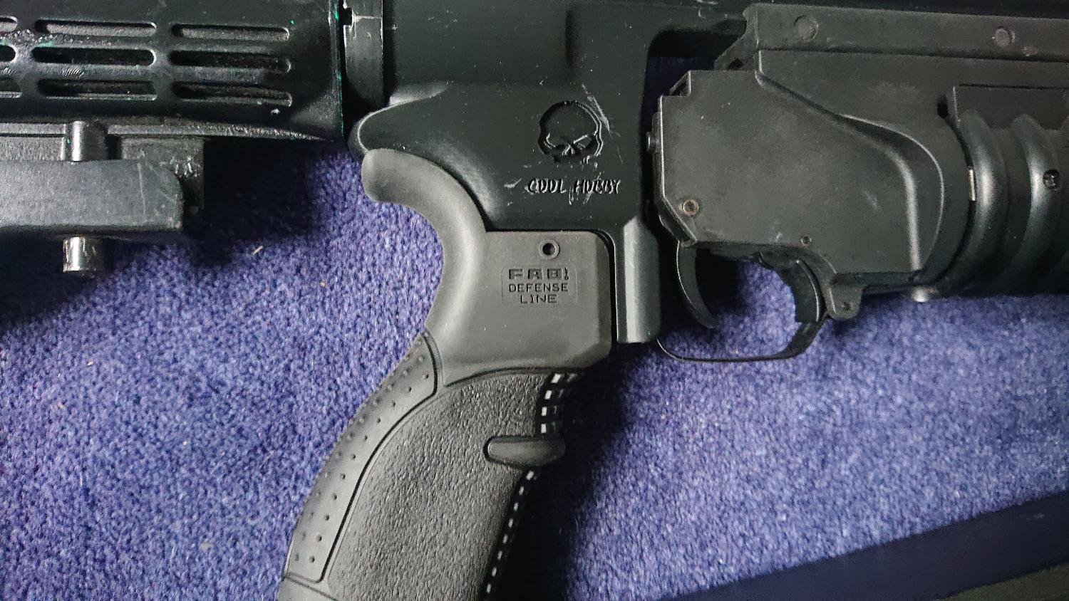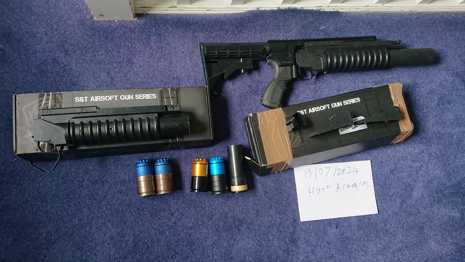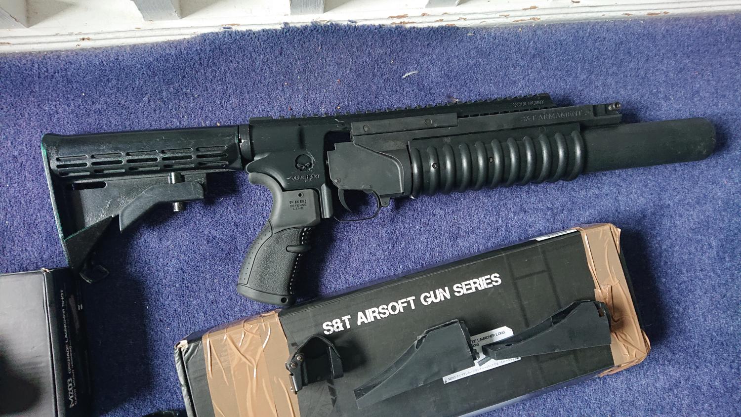 s&t long polymer launcher with 3d printed standalone chassis, fab defense grip and mounting parts for direct barrel mounting £50