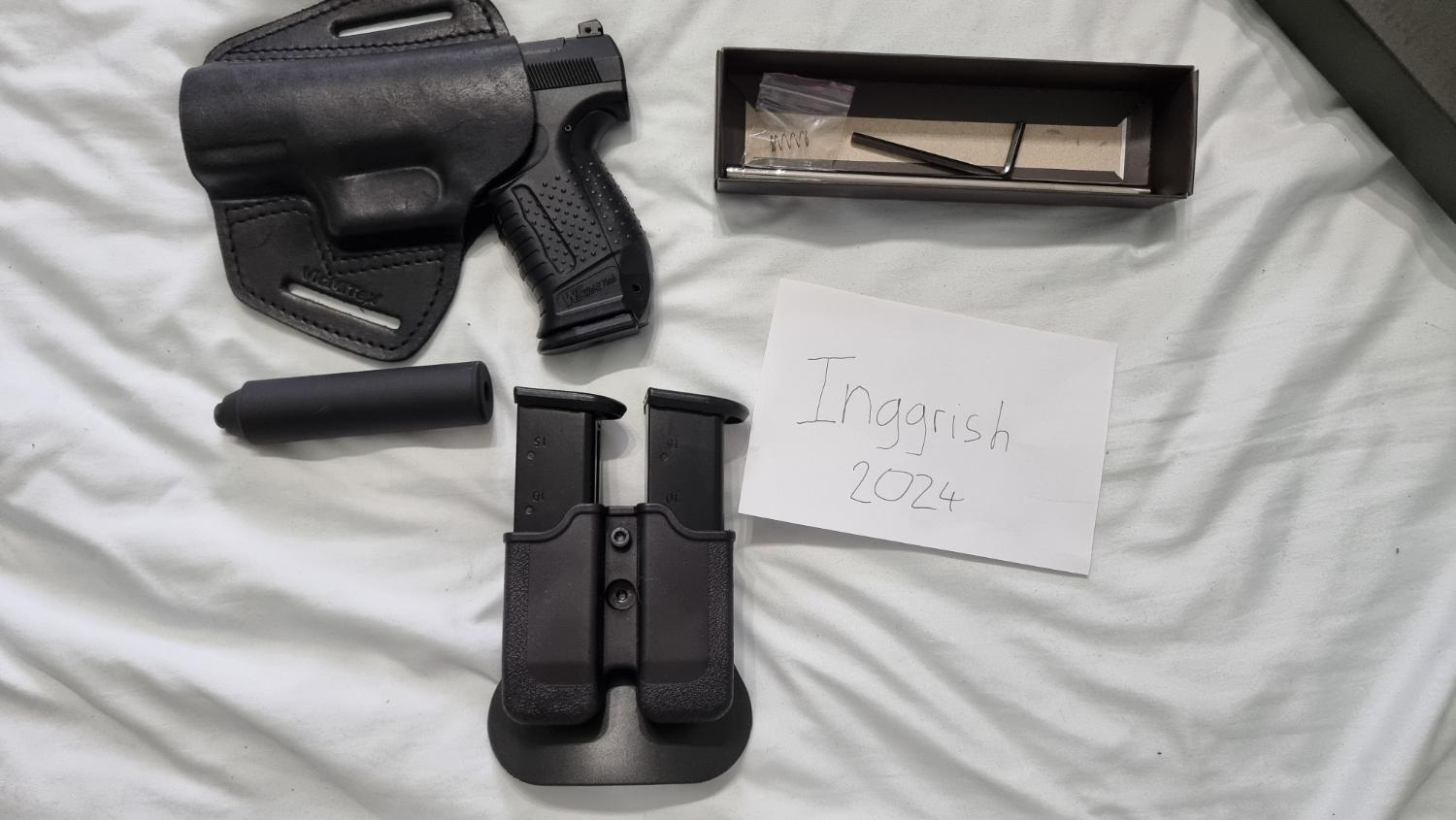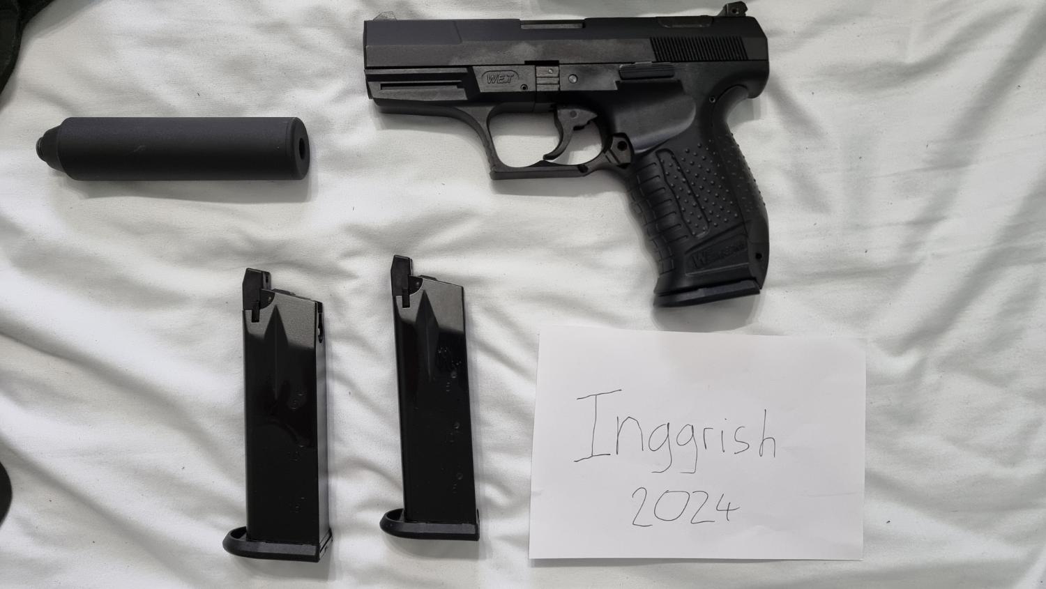 This is a gas blowback Walther P99 by WE. It has only ever been on one skirmish due to my health so is still in fantastic condition. Included is a barrel extension kit and suppressor, 2 spare magazines, and a magazine holster. I am also throwing in the pistol holster, though this is a left side holster.
