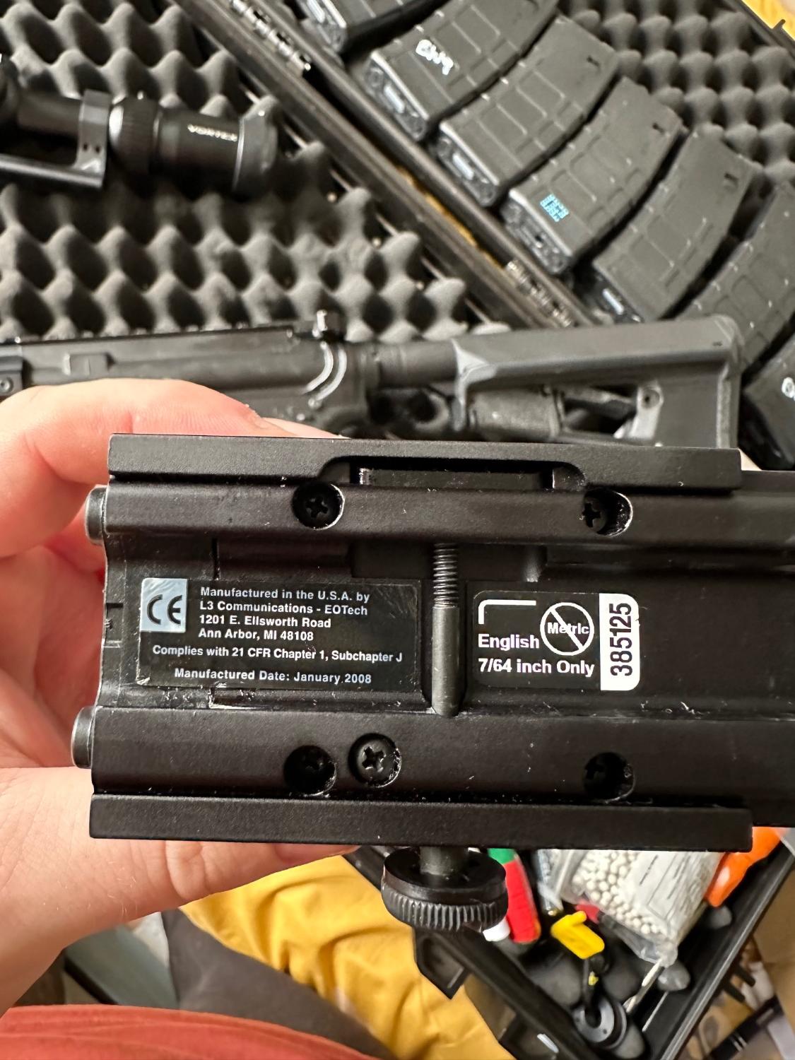 This is my old but trusty 2008 L3 EOTECH 552, mainly used for indoor since the brightness is probably only 60% of what it would be new, the bottom/right portion is hardly visible now, positively theres little delamination for the age, and works spot on indoors and in darker areas, I have played woodland with it once but yeah:)
