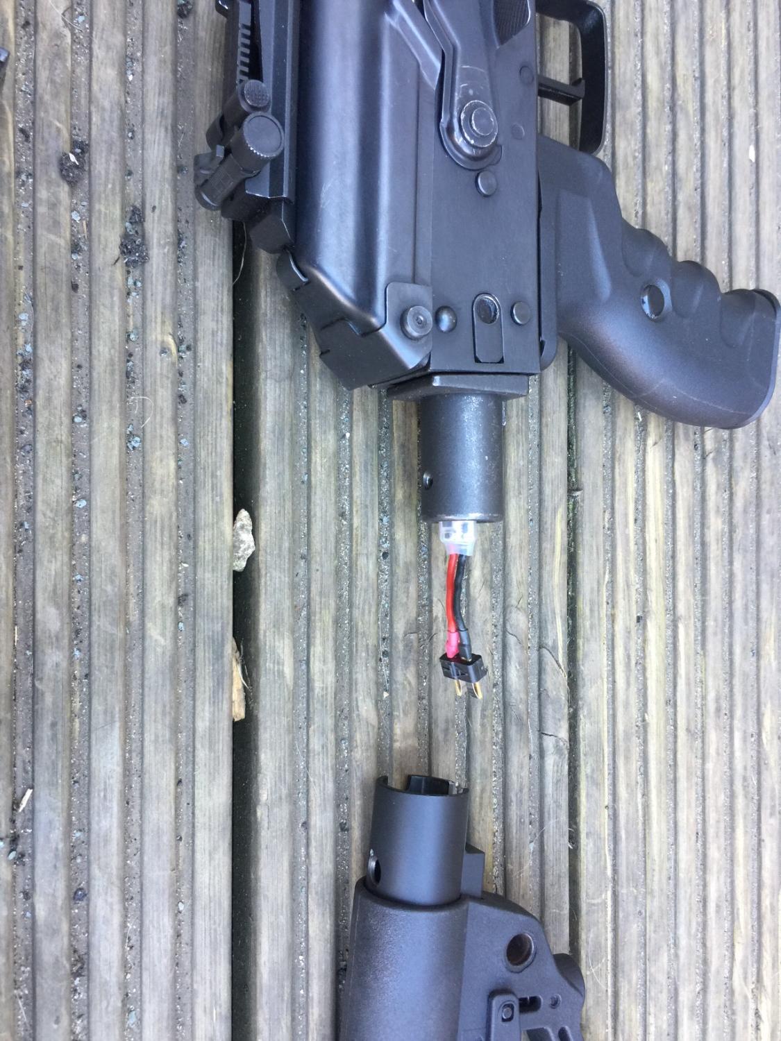 E&l ak12, has a Perun fitted And wired to the stock tube for bigger batterie space, the stock still folds, has a maple leaf hop rubber and nub, polished barrel, flat blade trigger,shs high speed motor, comes with grip,sight, 8 mags, shoots a dream on 2.8 to 3.2s, programming card is also there in case you want to tinker on with the settings. Asking £300 plus postage and PayPal fees