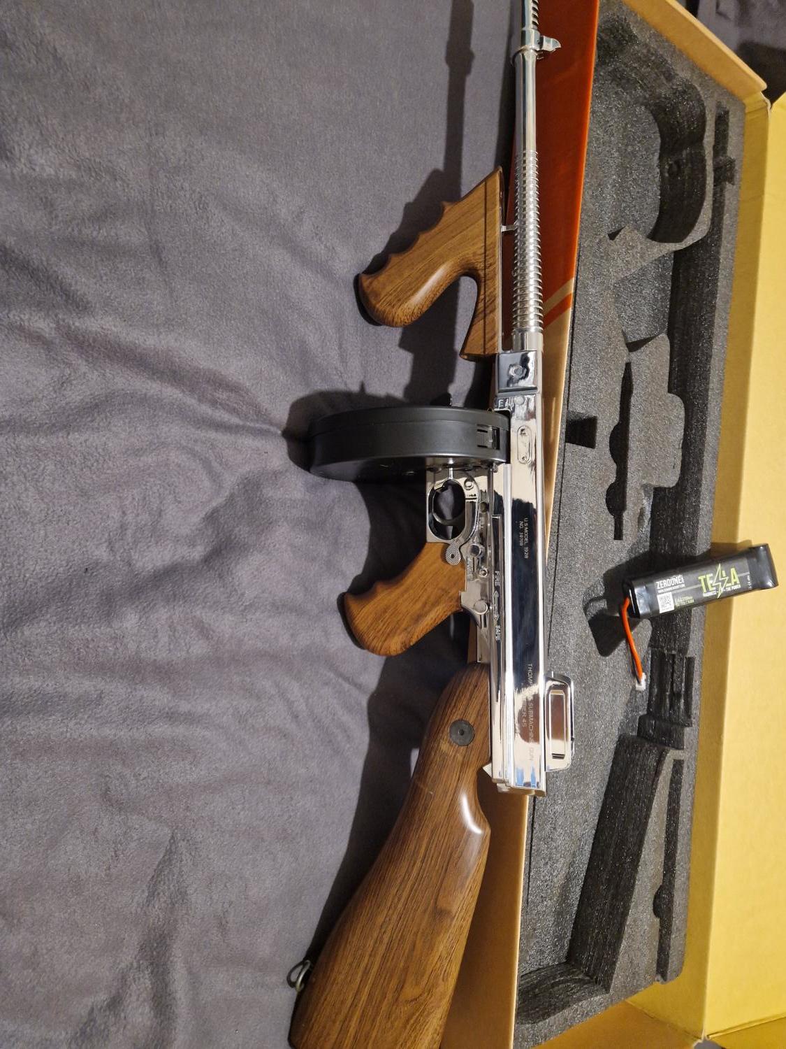 Used for one skirmish has a beautiful chrome finish comes with drum mag and 2700mah battery that fits nicely in the stock