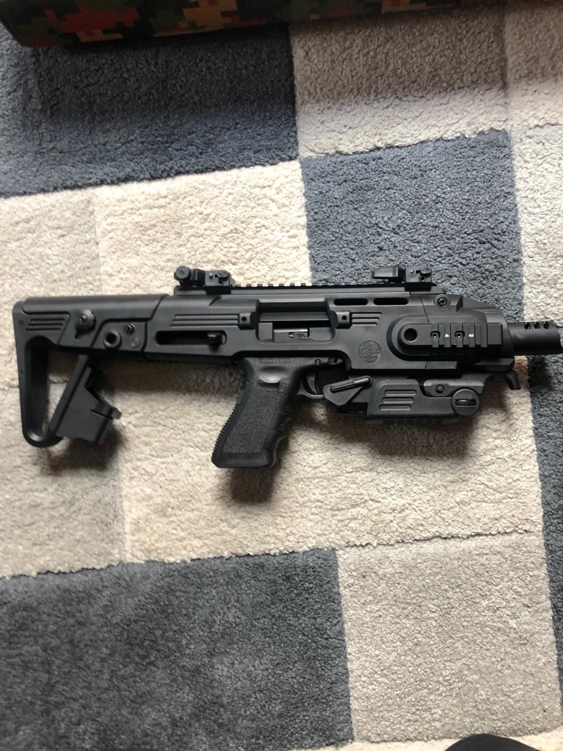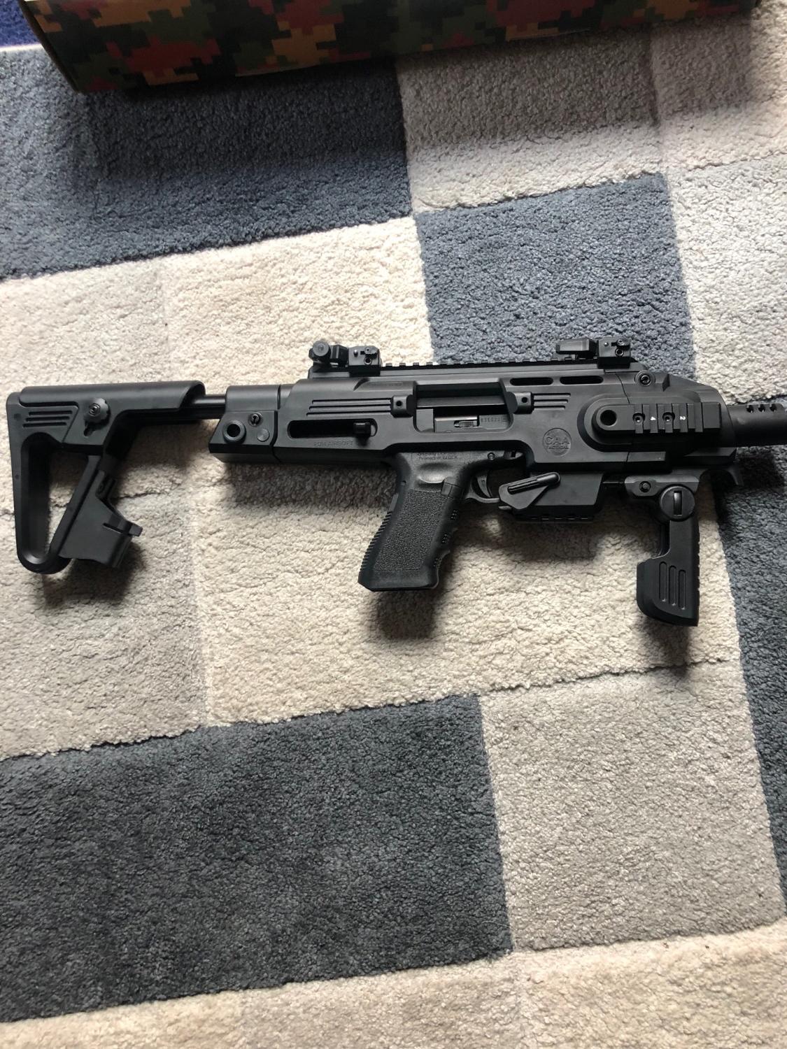 Fitted a maple leaf crazy jet barrel with a decepticon bucking and a hadron H arm. Has a Glock extended mag with it.