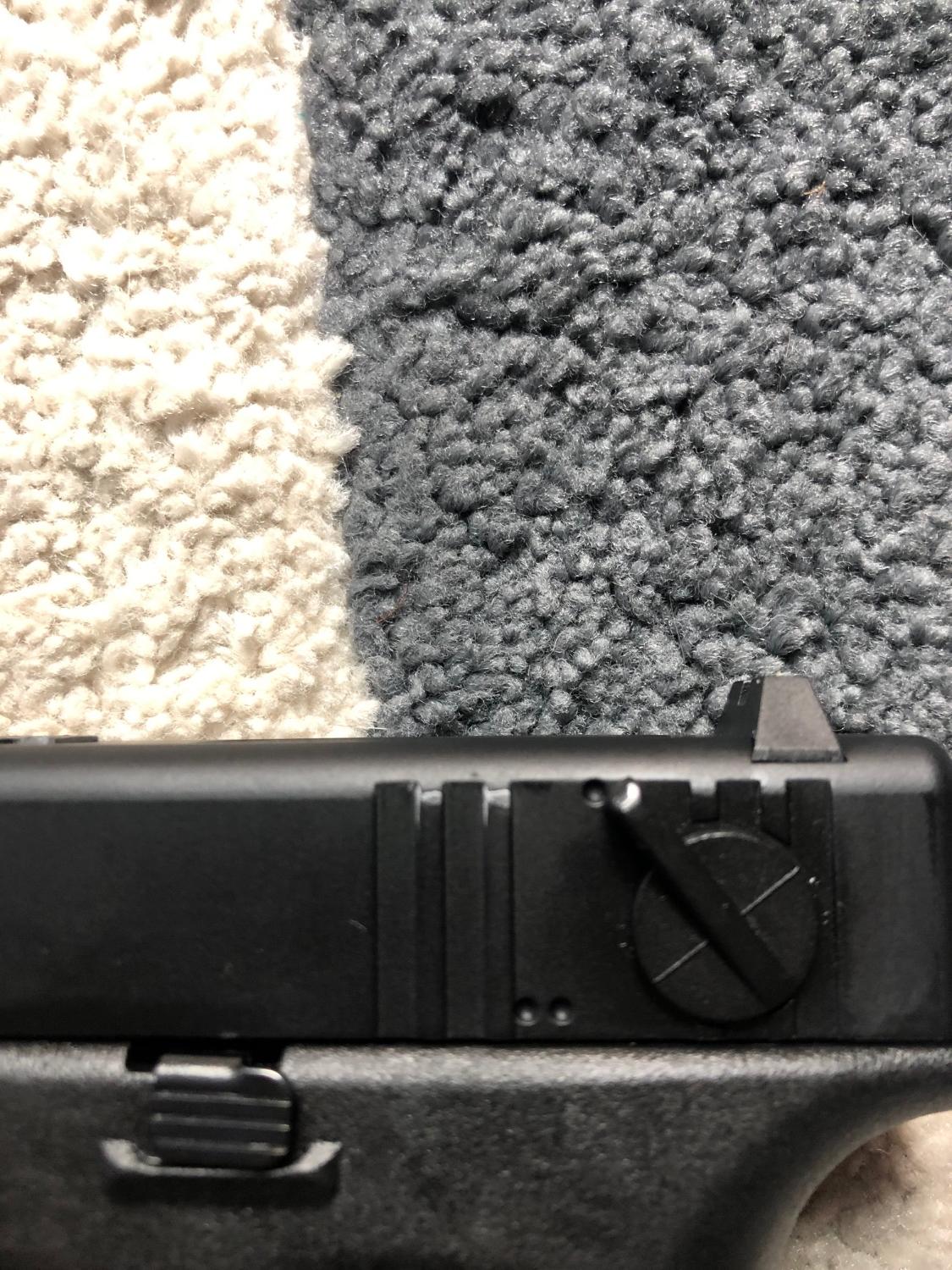 The Glock has a few marks on the back where the charging handle for the kit goes onto it, this is pictured. Goes into the kit easily, just a case of popping two pins out.