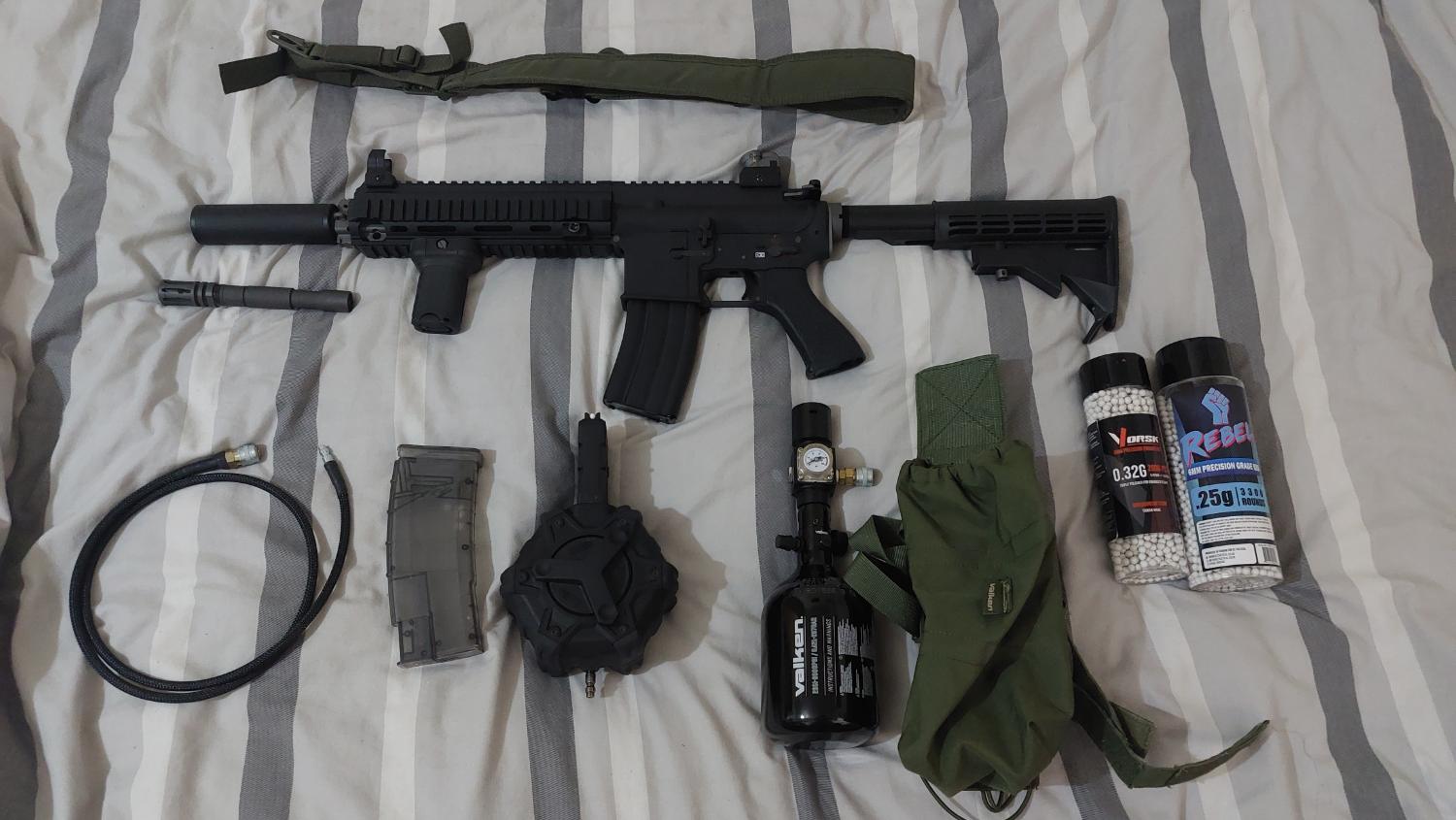 Bought it new and shot it a few times in the garden but never got the chance to use it in the field so its all in mint condition. Got the drum mag HPA tapped but the 30rd mag still has the gas tap, so can use both HPA and Gas.