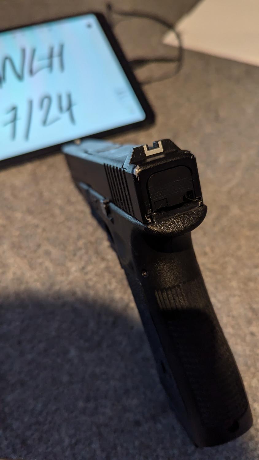 It's been well used, as you can tell from the photos. There is some wear on the slide, mainly due to the holster rubbing the paint off.