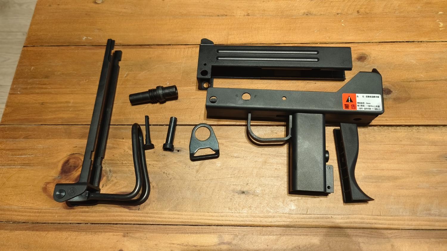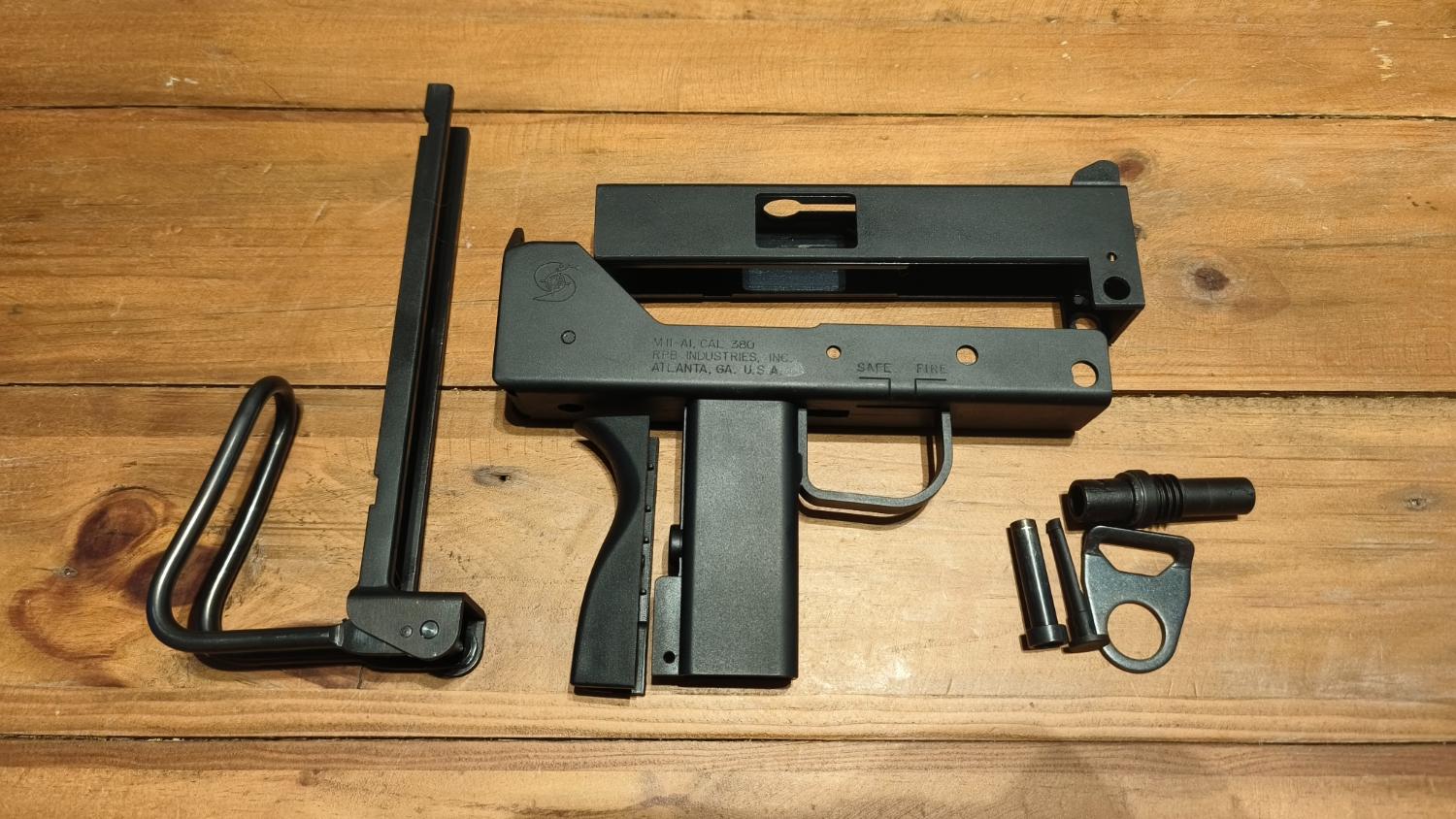 Outer barrel is made of metal, extendable stock is also made of metal with Ingram trades. Barrel sling mount is made of steel.