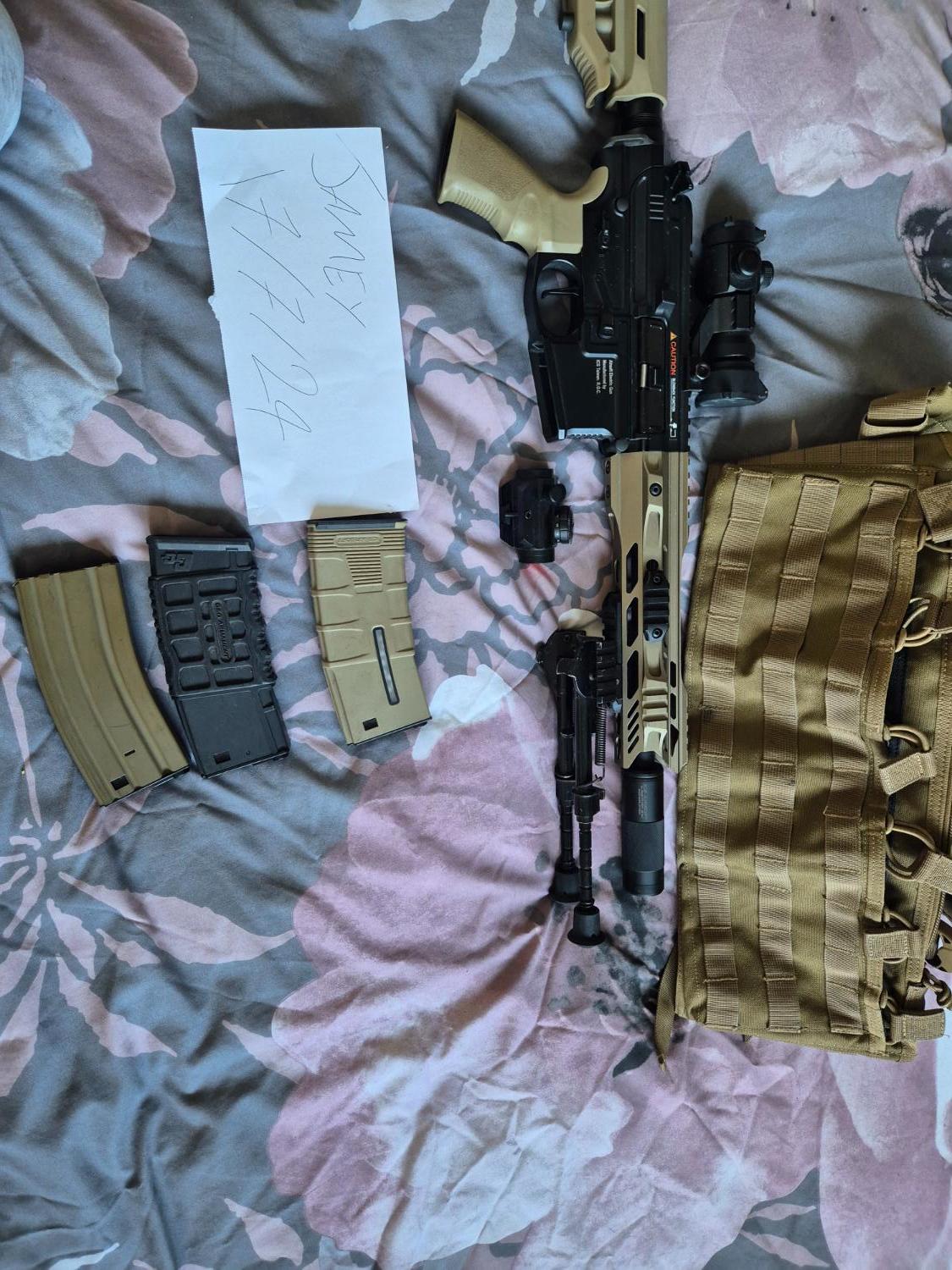 New battery's will be needed as the old ones are dead. This package deal come 3 mags, 2 red dot, 1 tri-pod and a person mag holder.