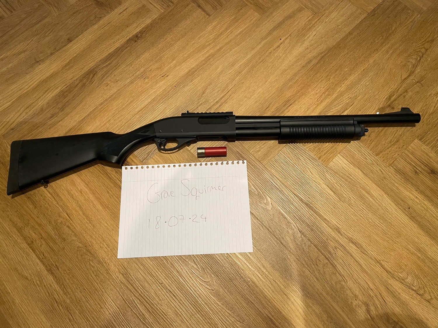 Selling as I don’t have a need for two shotguns. I bought two shotguns and swapped parts over to build my perfect shotgun build. I put the remaining parts together to make this. The main body is Golden Eagle and then the rest of the gun is Tokyo Marui, including the gas system in the butt stock. The stock and pump grip are ex two tone.