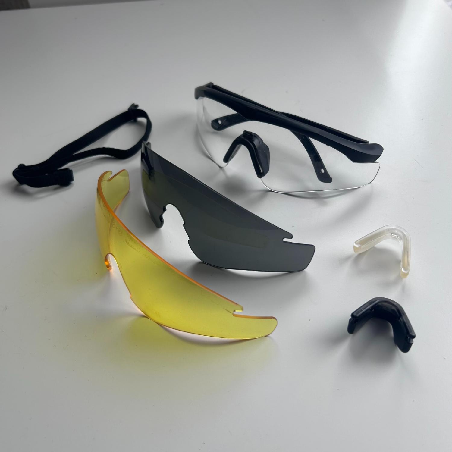 Comes with the frame, head strap and 2 lenses - clear and yellow (NOTE* does not come with the black lens, my apologies ignore the black lens in the pictures)