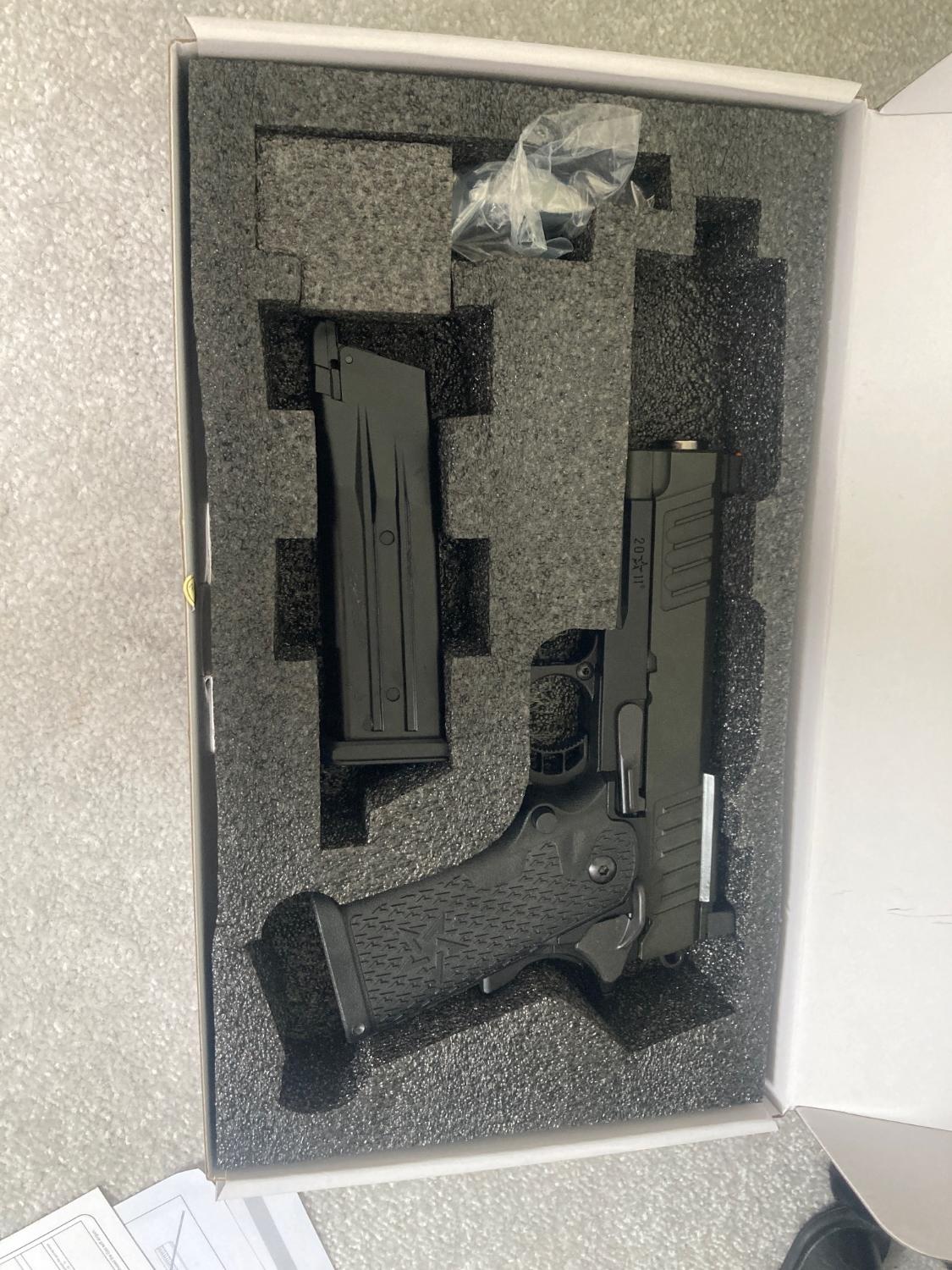basically brand new expect from shot a few dozen times in the house. Works as it should. Metal slide and has a nice kick to it. Comes with it’s original box which has a rip cause of my gorilla hands..