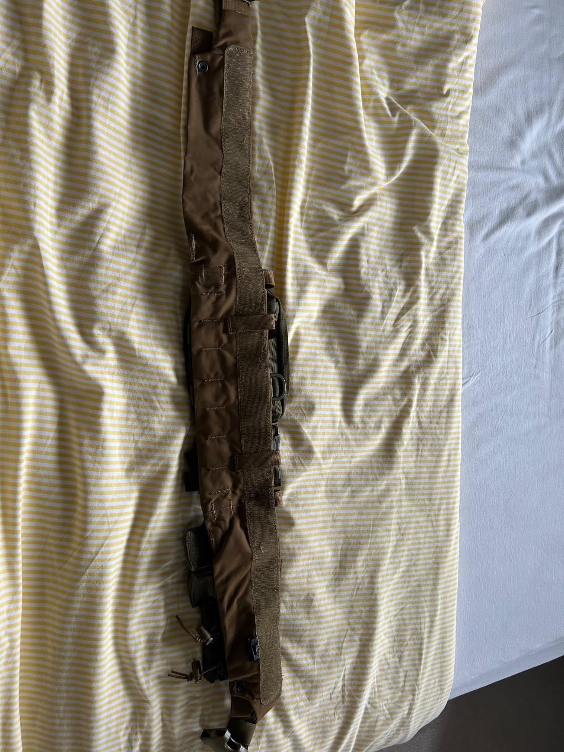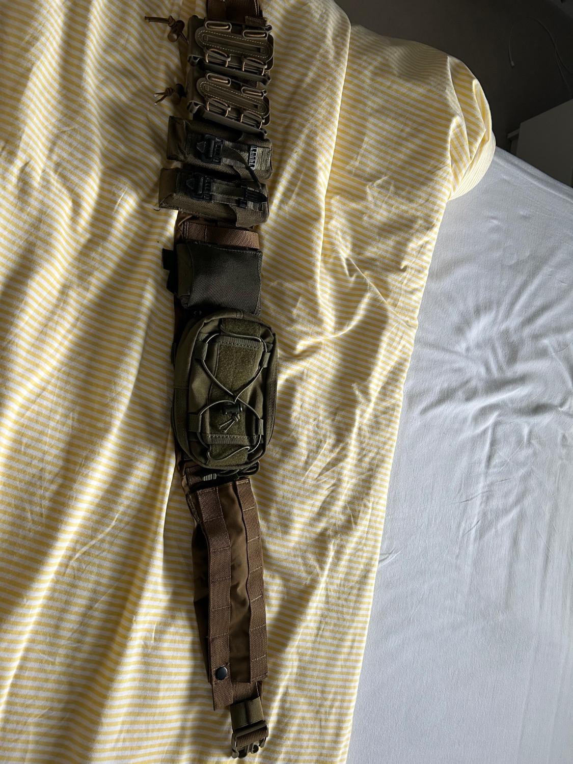I have used this belt a few times and I have kept in good condition with no wear or tear to the fabric. The belt is a size large but it can be adjusted. I had set this up for a sniper load out but decided not to use in the end. I put 2x pistol mag pouches, 2x Novritsch sniper pouches, dump pouch and utility pouch. I have included a Novritsch 0.36 bb bottle. It a Velcro belt and the Velcro inner is included. £25 plus postage