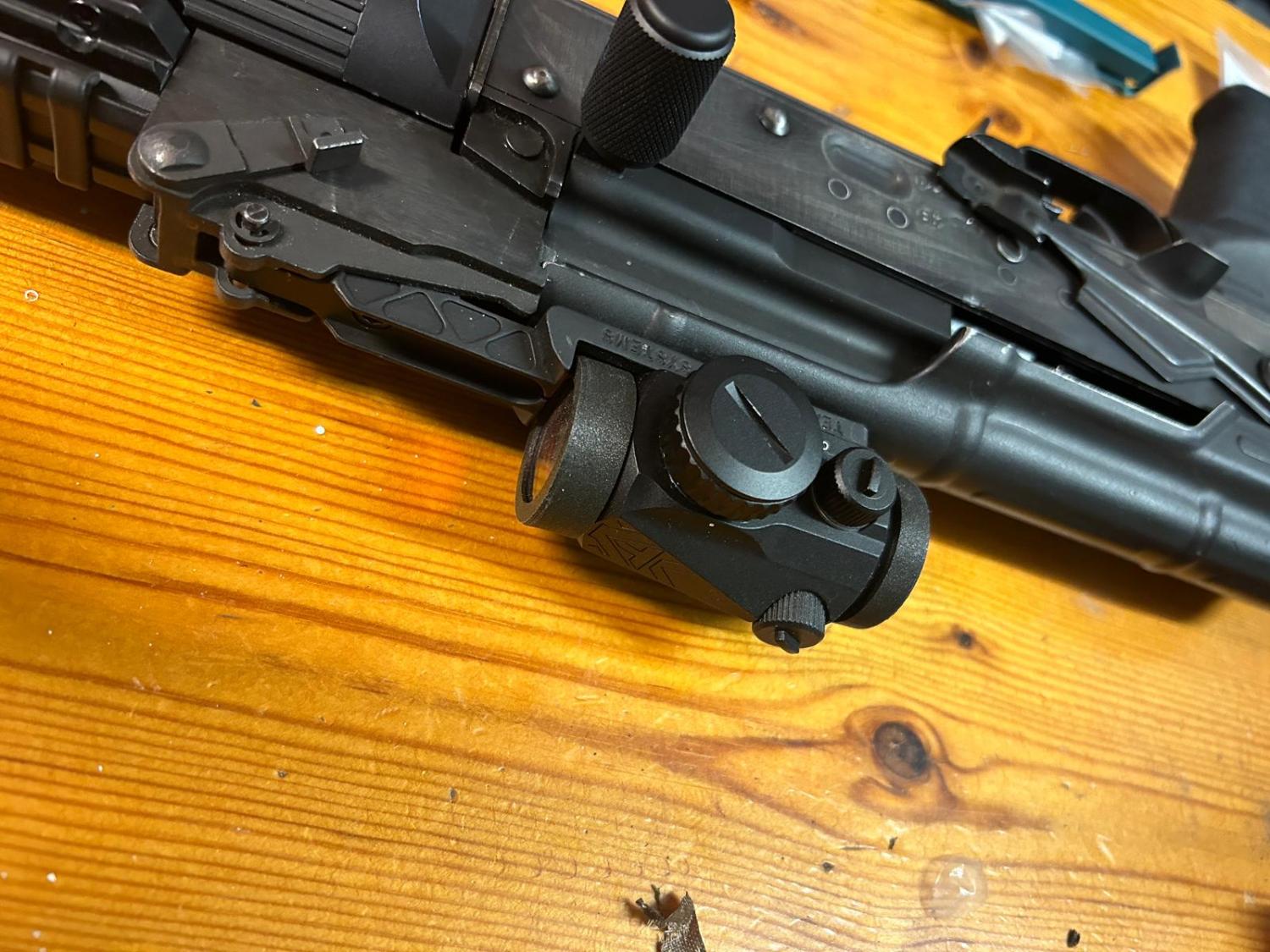 Vortex red dot on a RS Texas arms rear sight adapter (will accept any T1/T2 style sights)