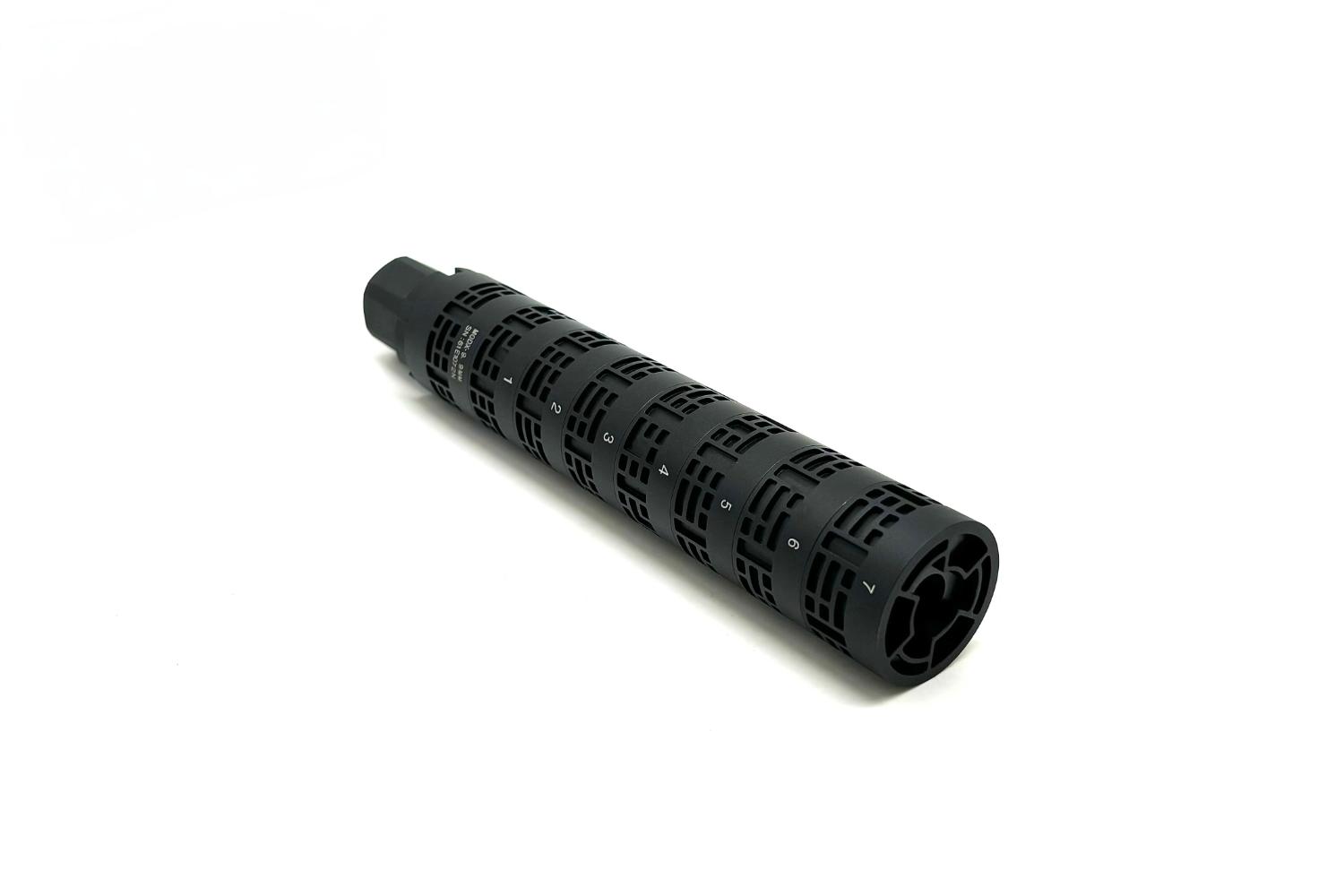 The 2-3-4 parts of the suppressor are detachable parts, and the silencer length can be freely selected. Made by Aluminum.