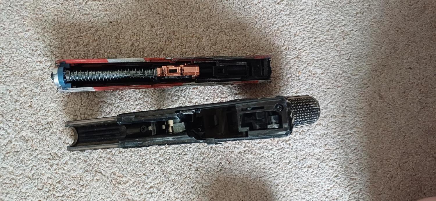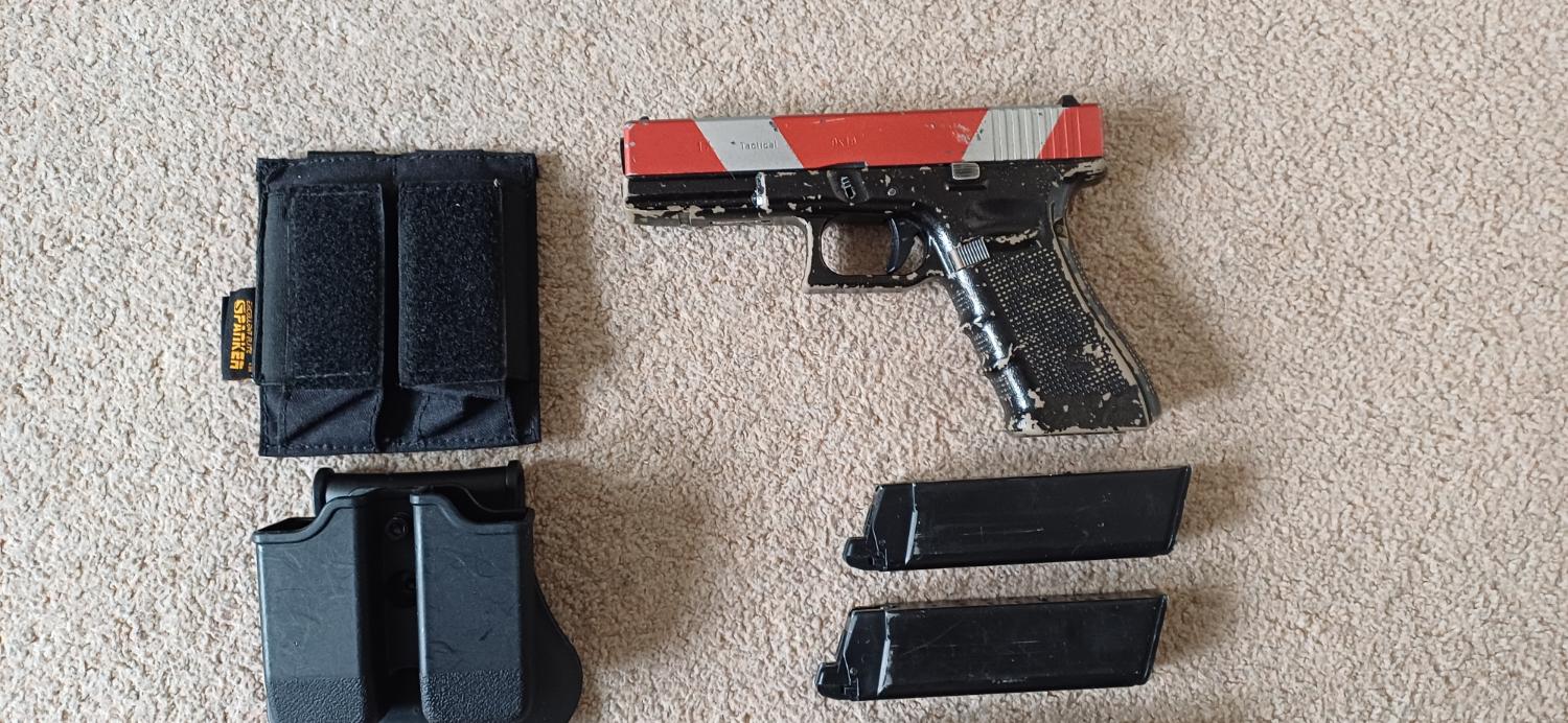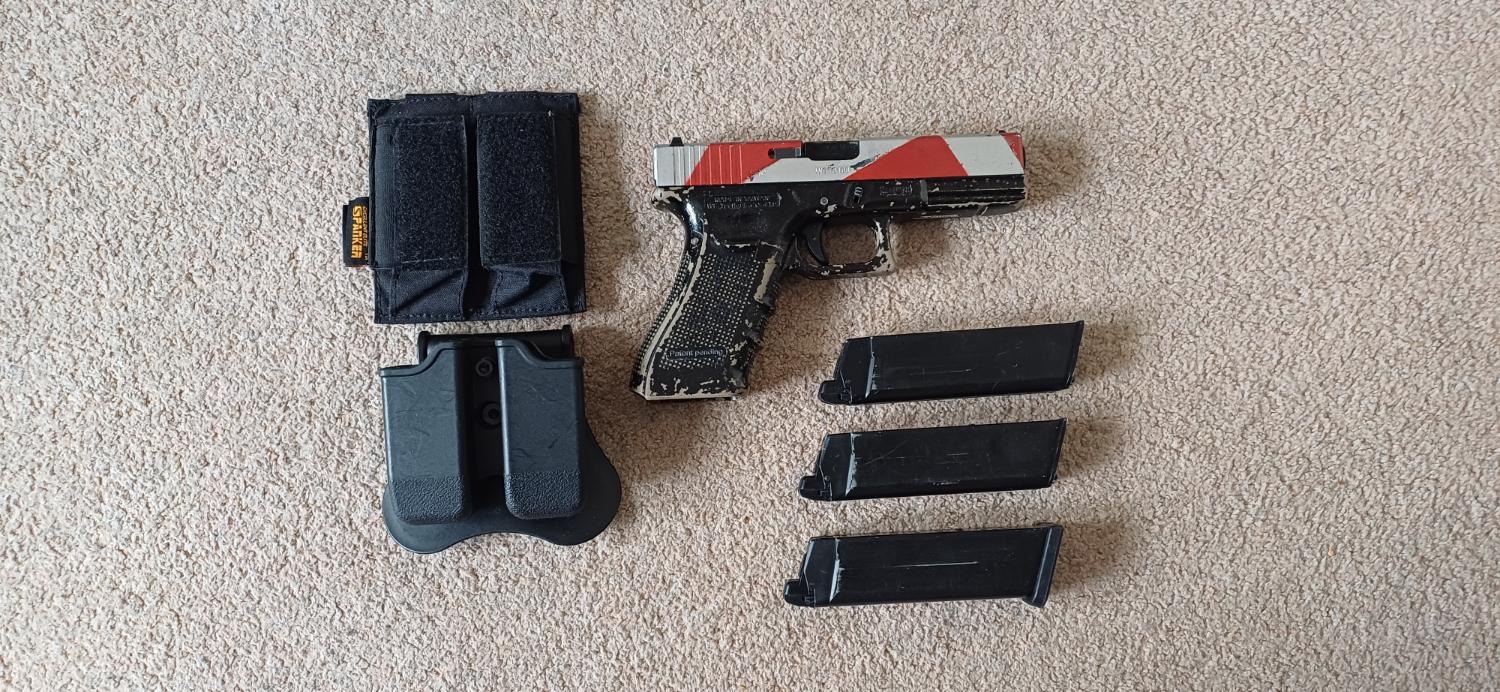 Despite the wear & tear on my terrible spray painting skills (used to be tan), this is a fully working G17 with some internal upgrades