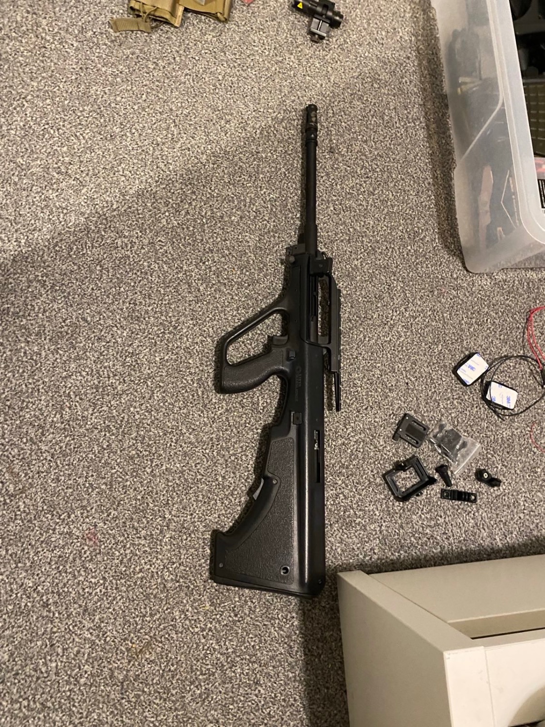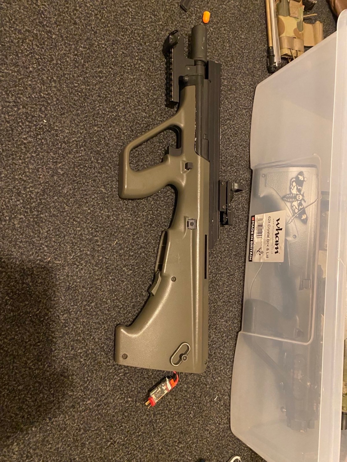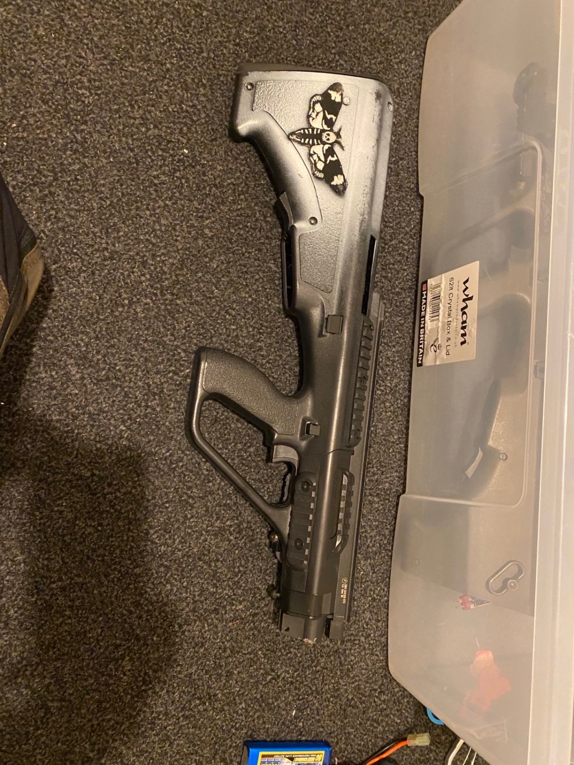 ASG Aug XS commando. Upgraded by kingdom of airsoft a while ago. Good barrel, custom motor, deans connectors, gearbox upgraded and a gate warfet.
