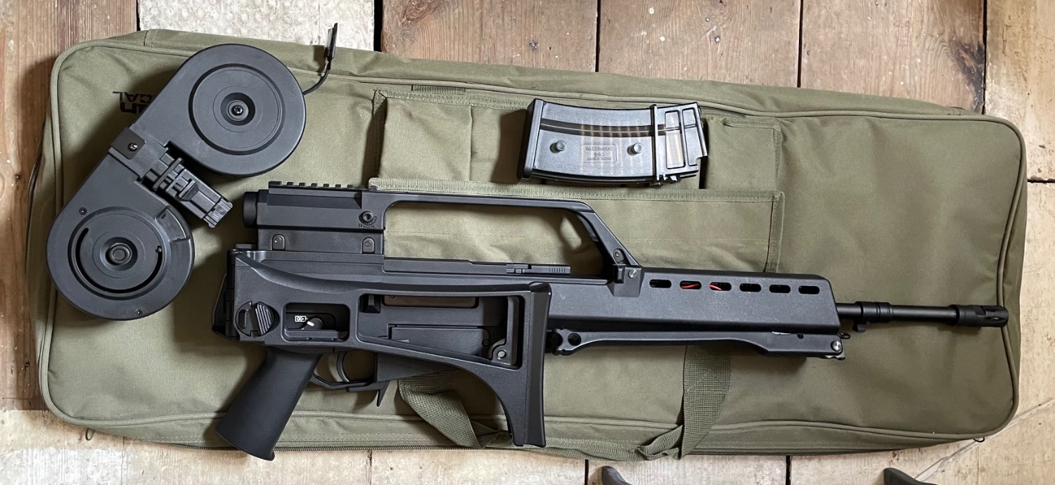 SRC SR36 MG + 1 mag. New never fired. Also comes with drum magazine - Note drum mag has a wire loose on battery terminal just needs a dab of solder
