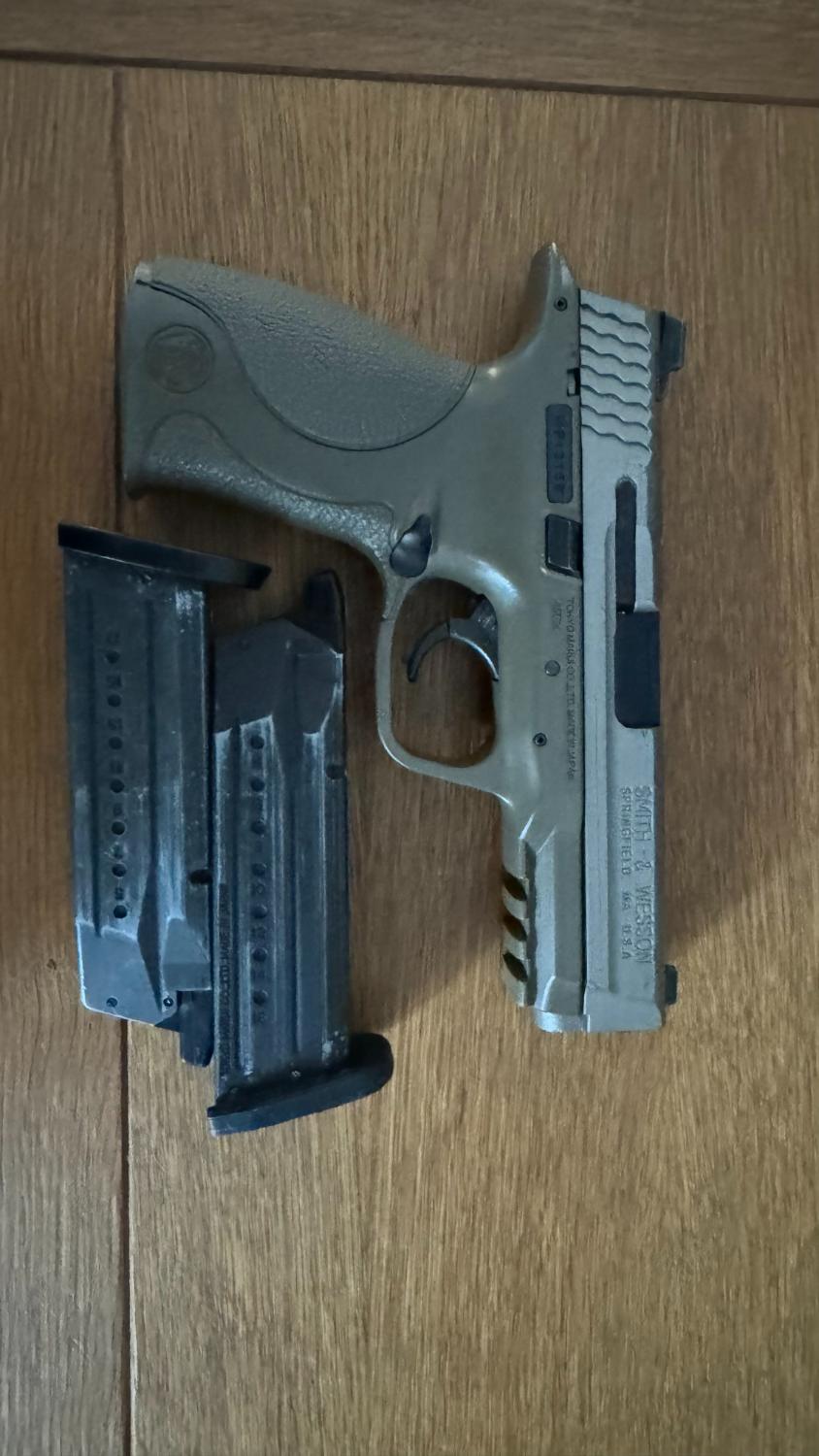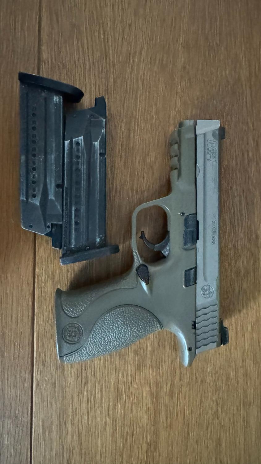 TM M&P9 with 2 leak free mags, 1of the mags has a 3D printed bas plate, used but works fine, great starter pistal as it was for me.