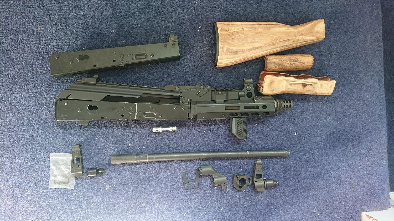 5- Slr front kit with barrel, handguard, draco style front sight block, shortened piston and muzzle break. This has all been painted green / tan then back to black. £80