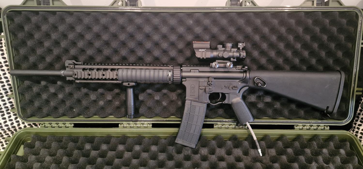 Perfect DMR platform for running a Lone Survivor setup. In excellent condition, absolutely solid and only skirmished a handful of times. Very accurate and very quiet, runs off HPA so you will need a tank, line and regulator.