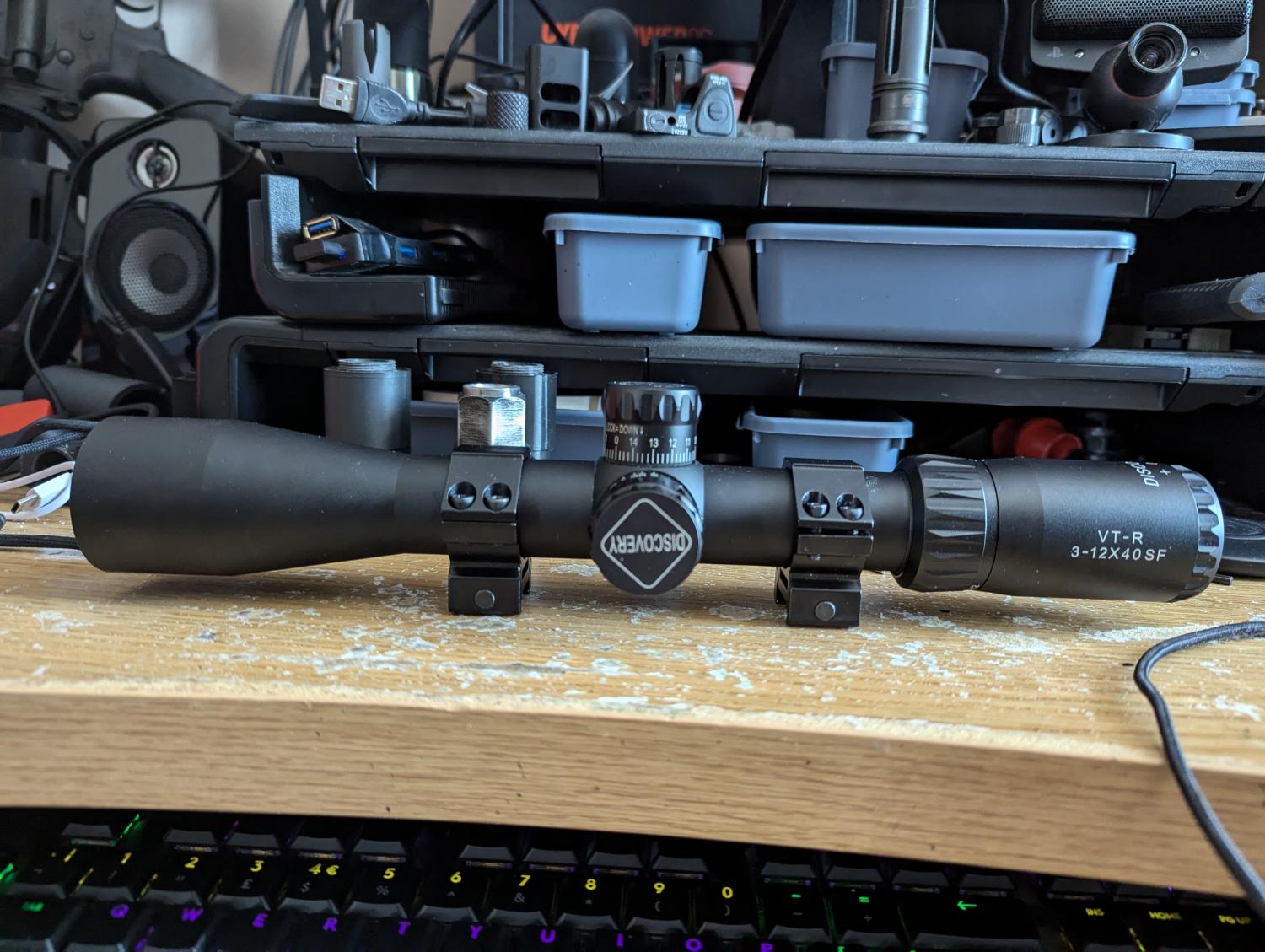 Discovery Optics VT-R 3-12X40 SF Rifle Scope. Selling as I've upgraded to a Vortex Viper.