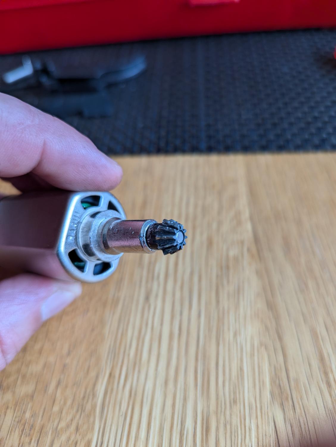 The motor was used once and the motor plate fell out of the grip damaging the motor teeth.