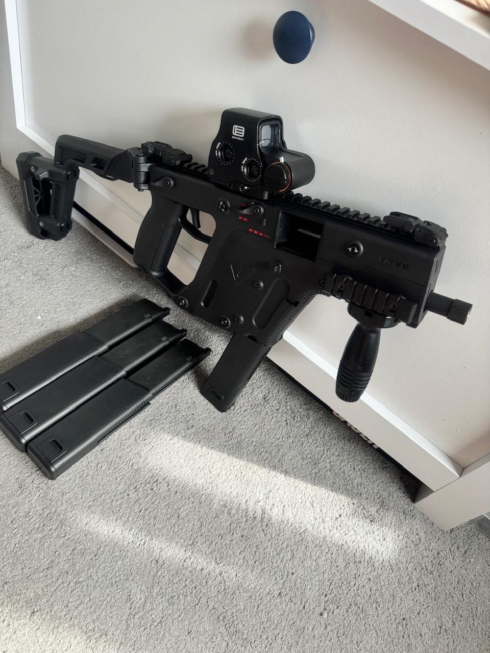Vector has only seen one game but wasn’t used for the whole night so is basically still in very good condition only thing is that just a bit of paint wear on the charging handle , it’s literally a few months old