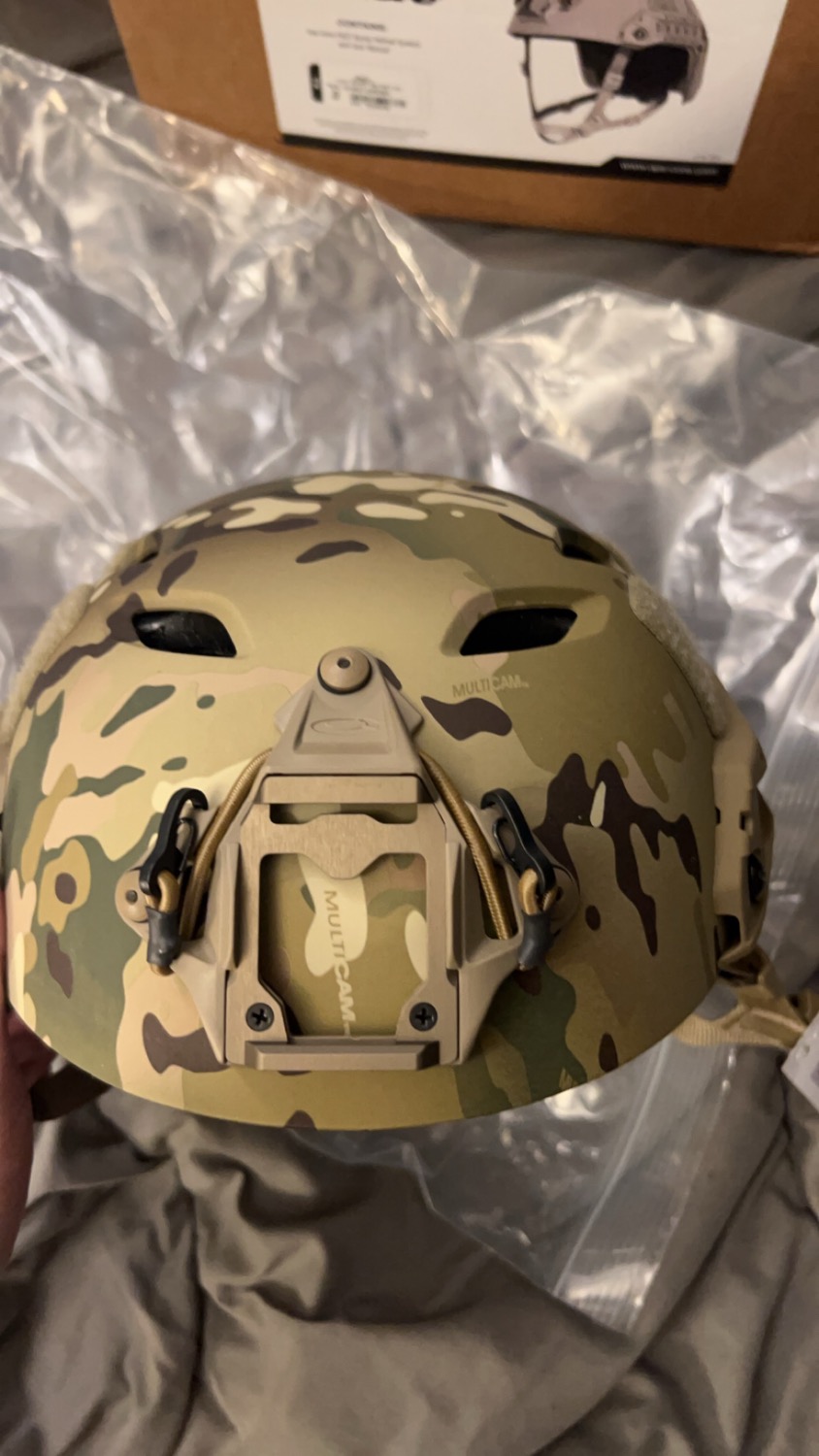 Only worn to test and play with the retention system leaving light scratches on the Arc Rail screws while trying to dial the fit in better. Has been sat in its box since the first few days and still comes with all tags attached etc.