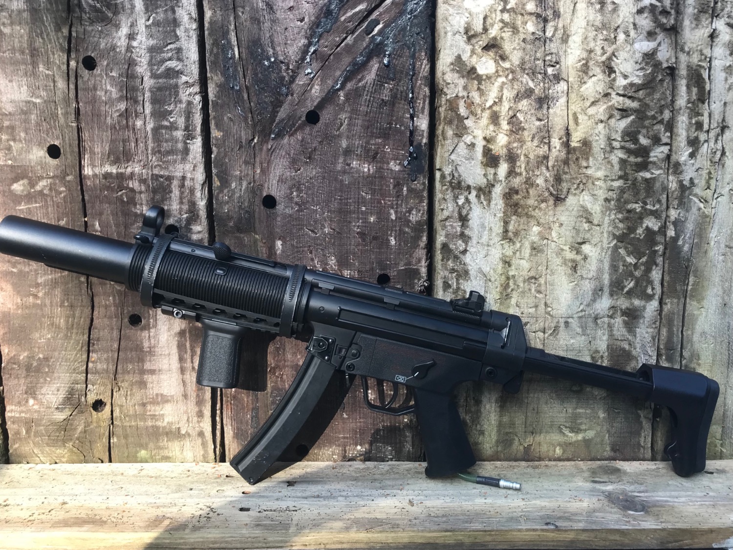 Front end ghetto modded (jubilee clips) to run a foregrip and torch.