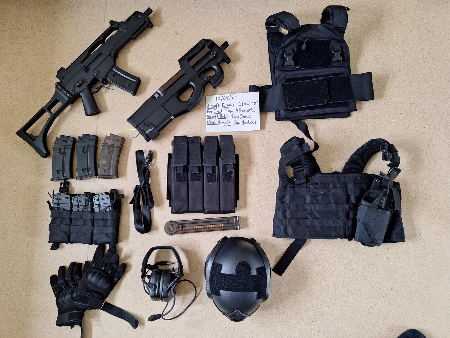 1 (quite dusty) 8Fields Buckle Up plate carrier, with both STANAG and P90 magazine pouches- a great vest for those who want to run multiple primaries but dont want loads of vests.