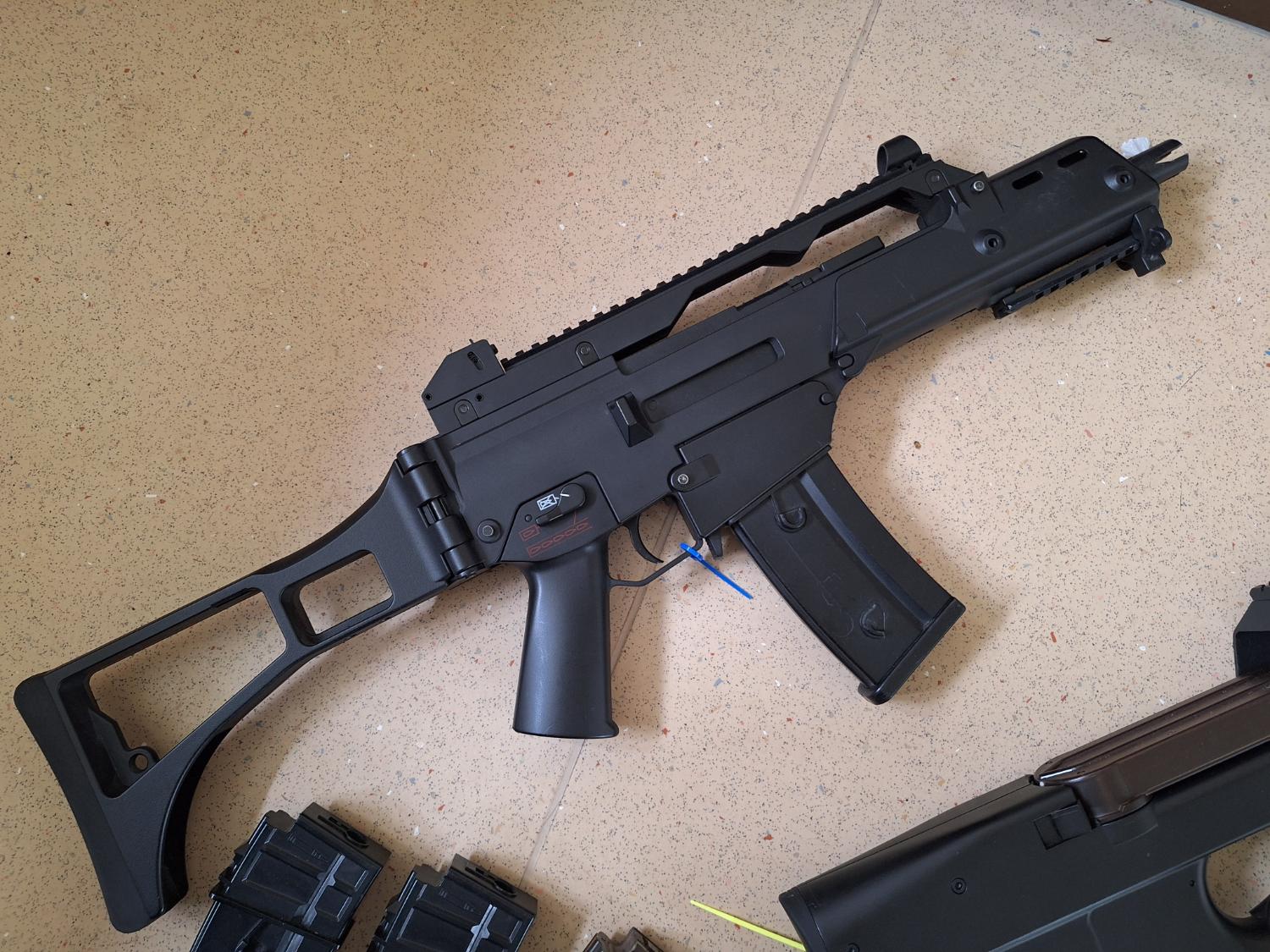 A project G36 (again, unsure of the brand) in good condition. Only fires in semi-auto, but accurately and far as I remember.