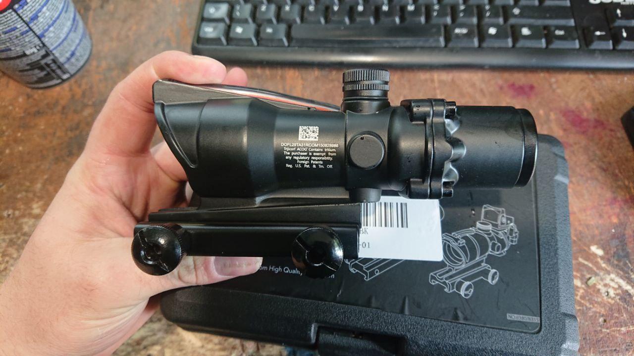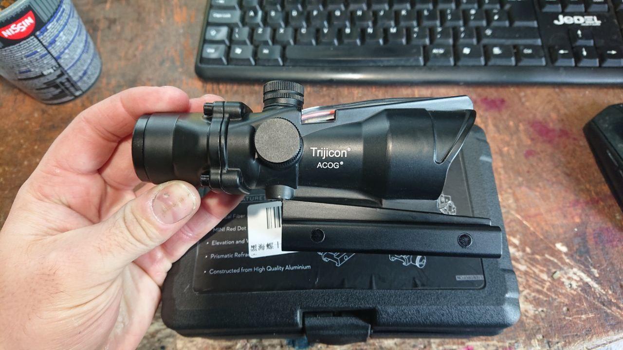 An as new acog with the cross hatched reticule. Red fiber optic and 4x mag. Been mounted once and taken off. Price includes paypal fees and postage.