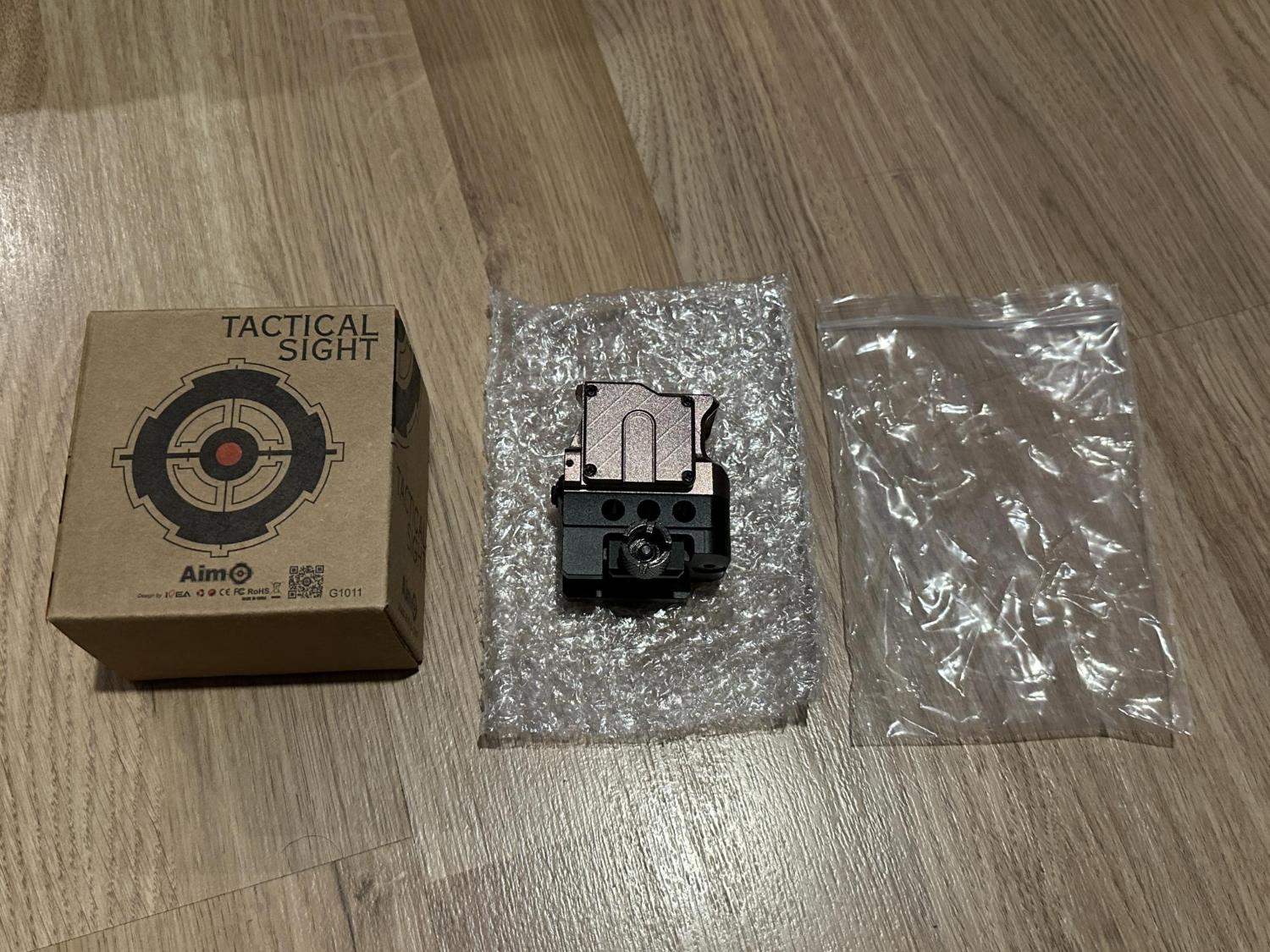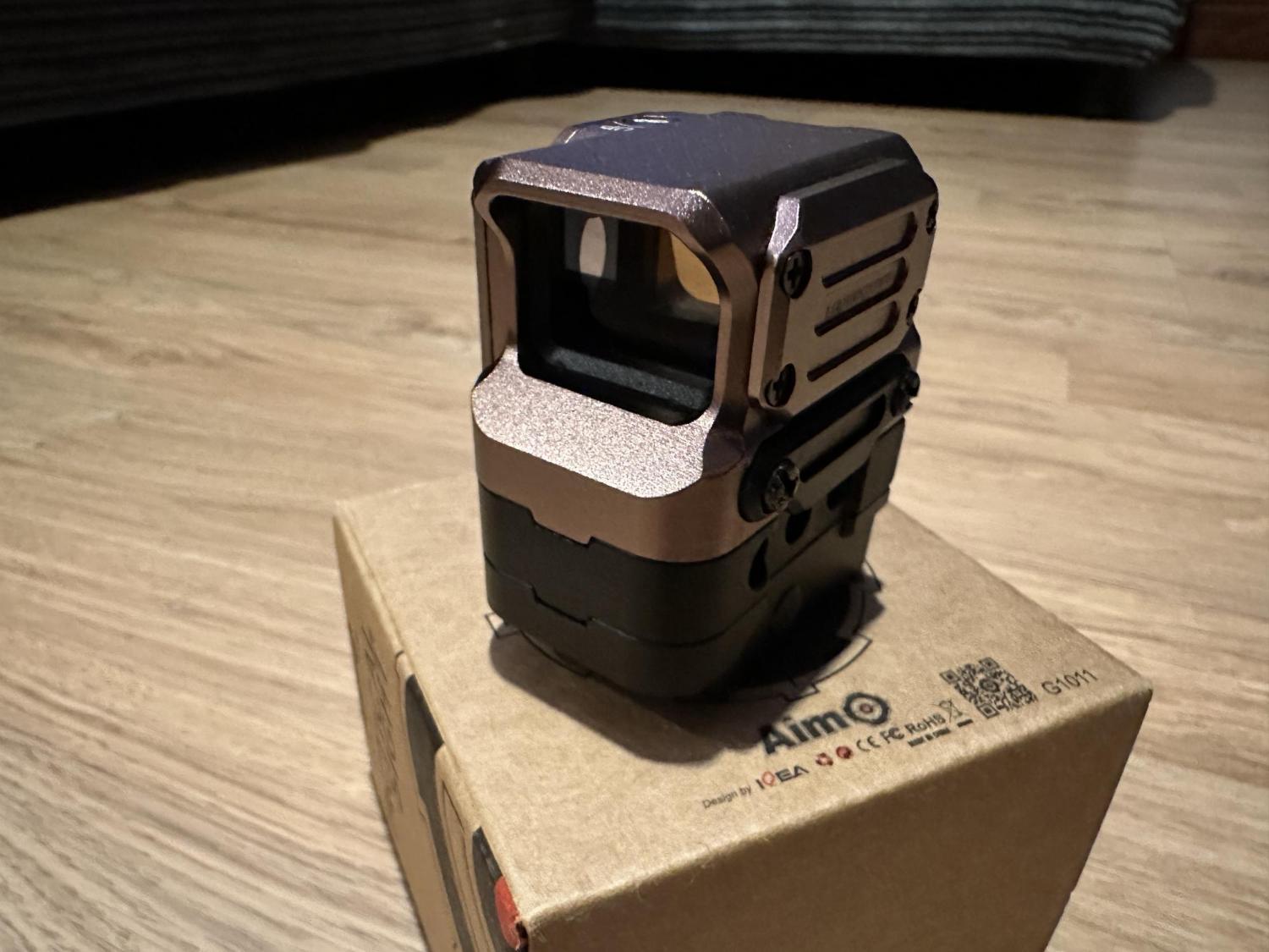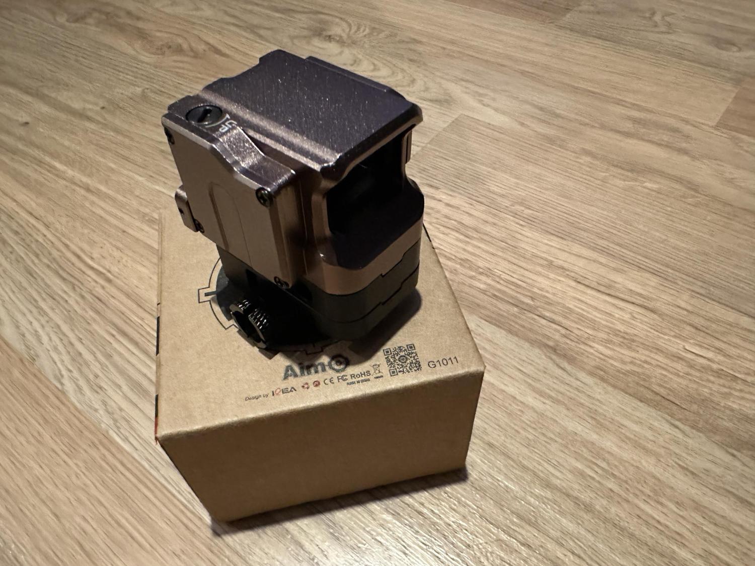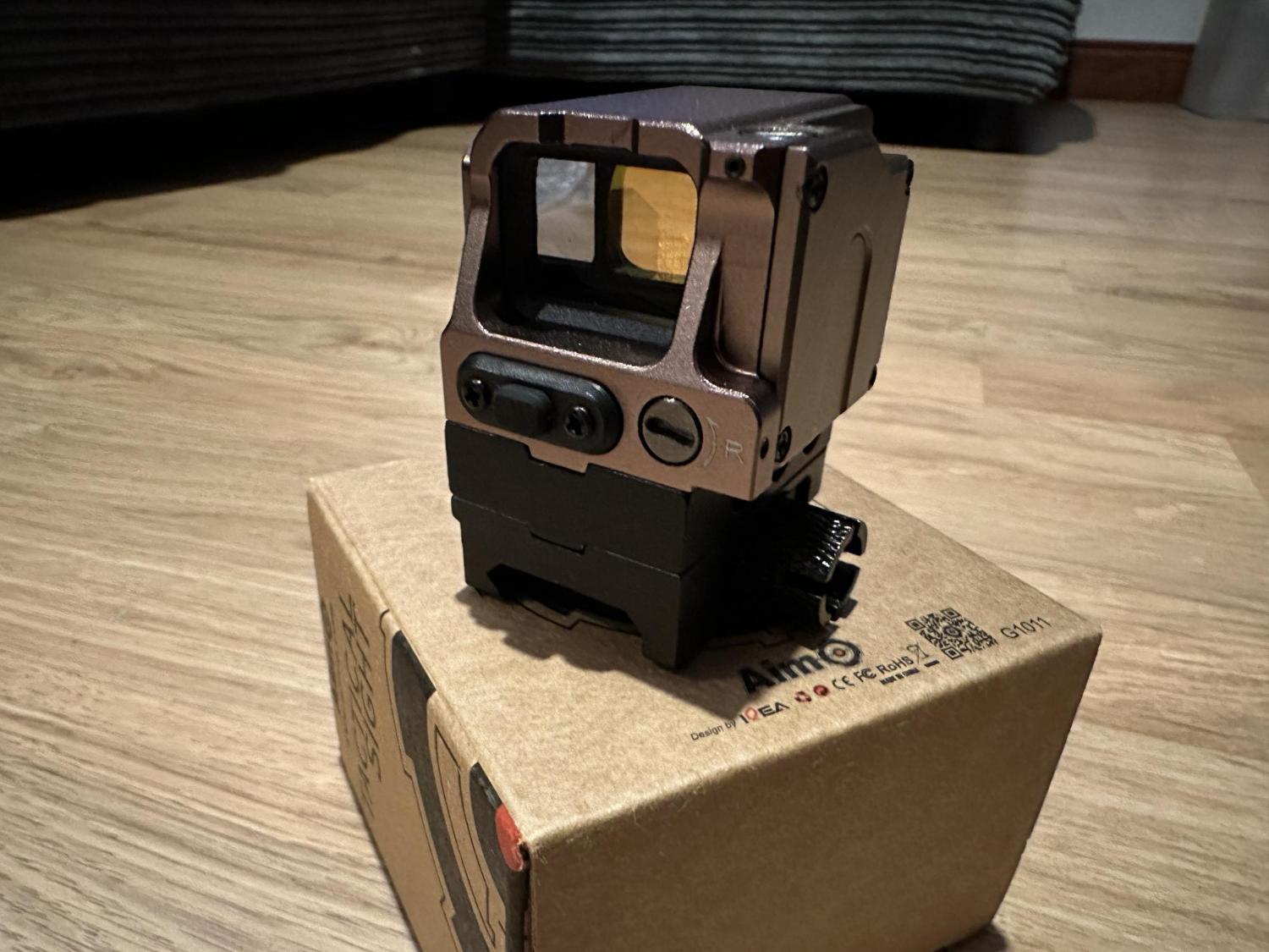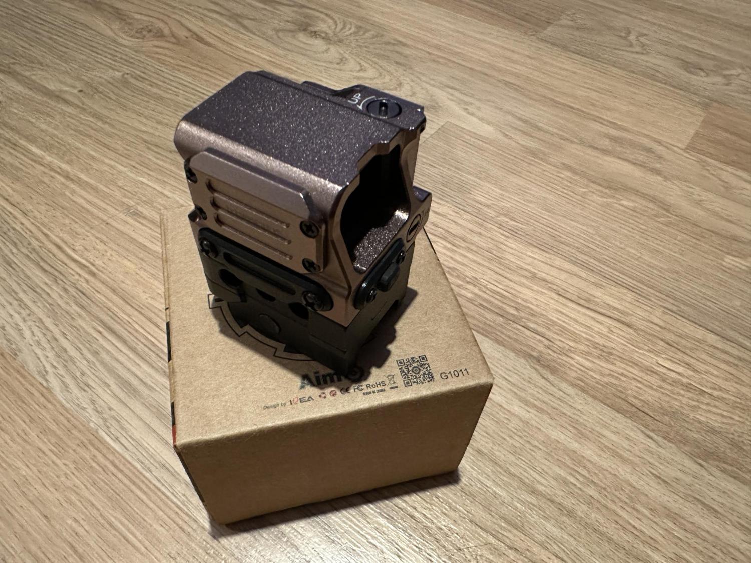 AIM FC1 Red Dot Sight 2 MOA Reflex Sight 1x Holographic Sight (Dark Earth) in As New condition, complete with original box and packaging.
