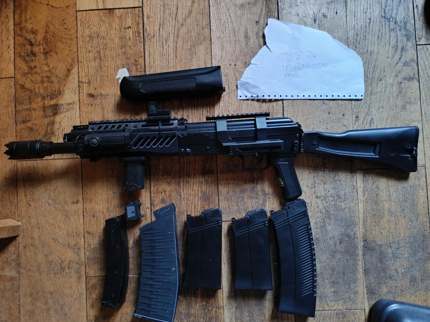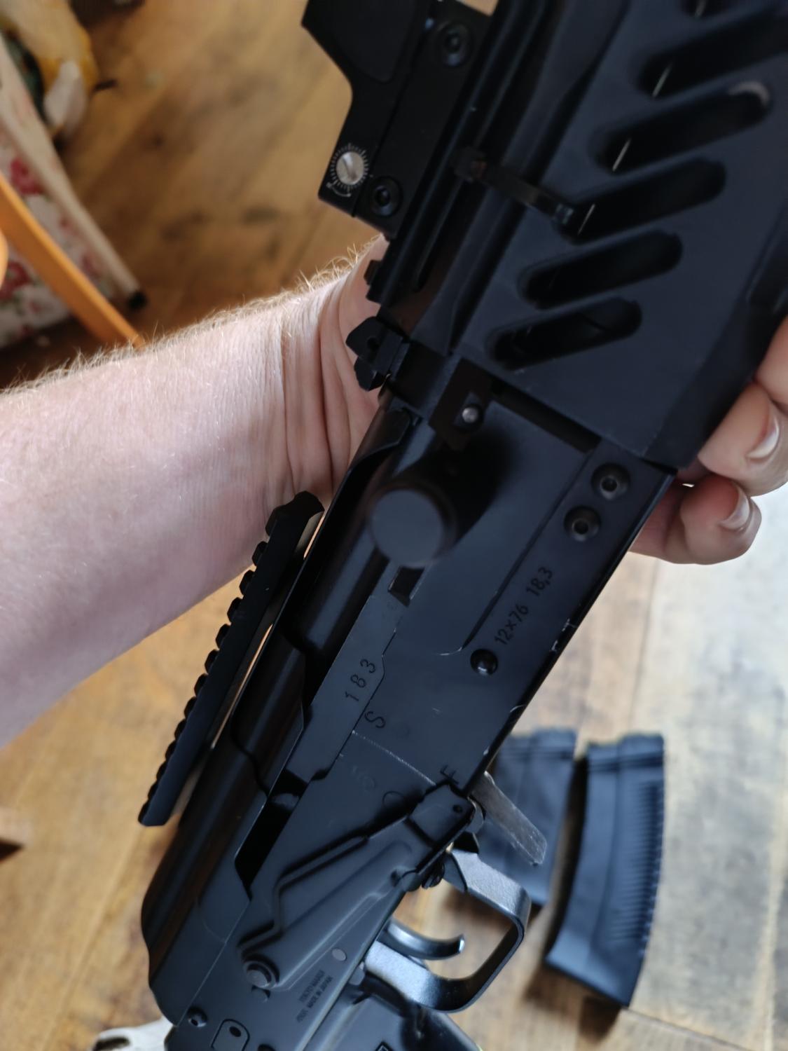 3D printed large mag with mp5 mid cap to use a saiga gas reservoir with.