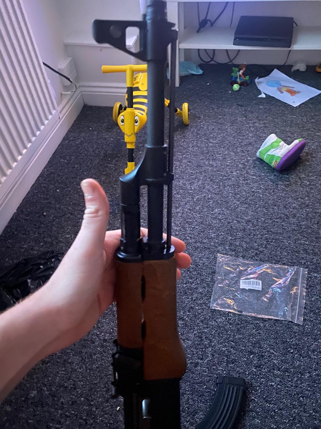 Here we have for sale is a 10 year old G&G AK47 without the ebb with a wood stock kit. This RIF is rear wired and is in good reasonable condition for its age. It was purchased off a techy who was going to use it as an upgrade platform but was left barely used. unfortunately there is a casting defect which is shown in the pictures. it has an upgraded spring shooting 345 fps. Buyer will have to pay postage and fee’s. Happy to supply a video of it shooting via what’s app.
