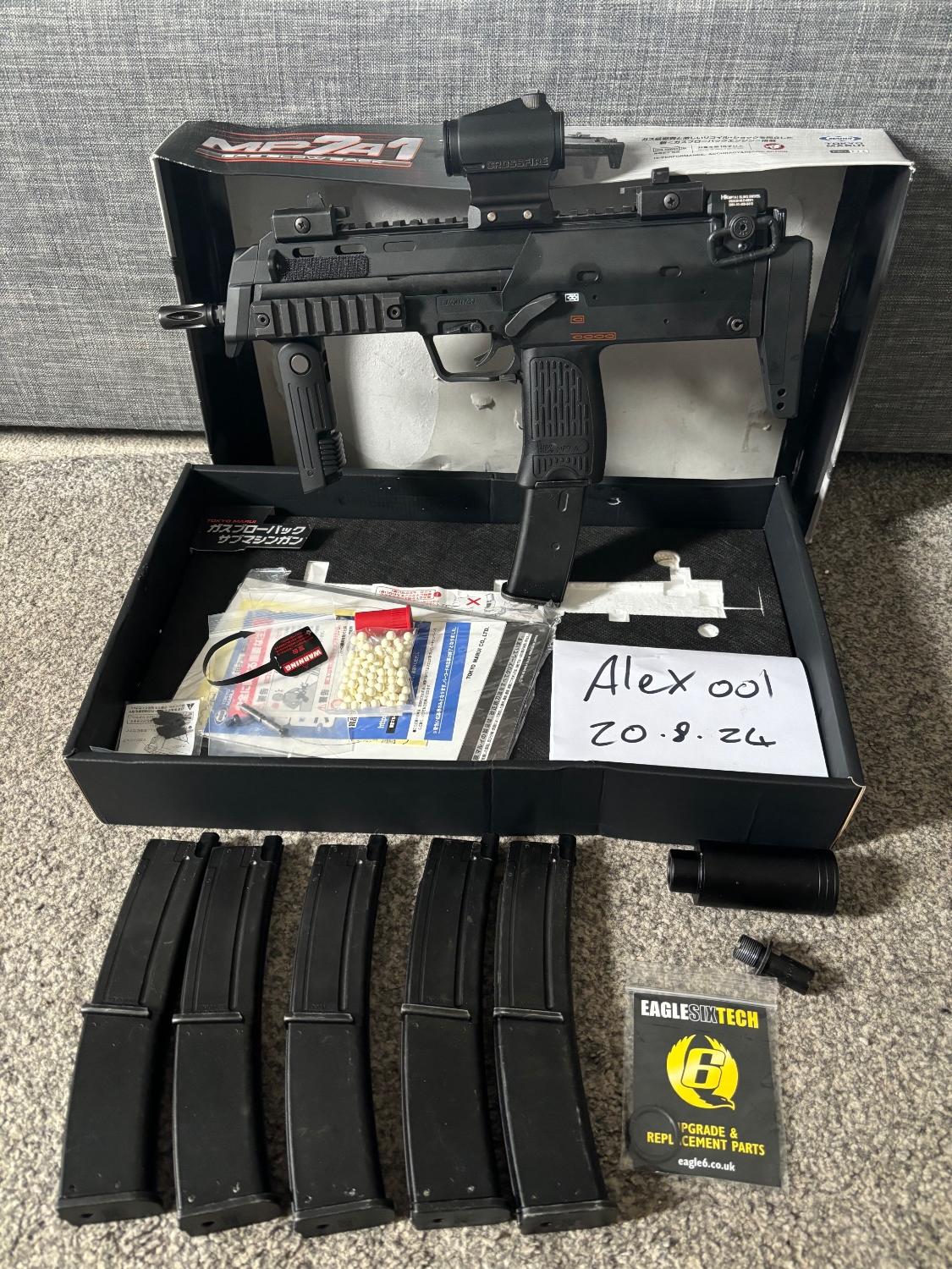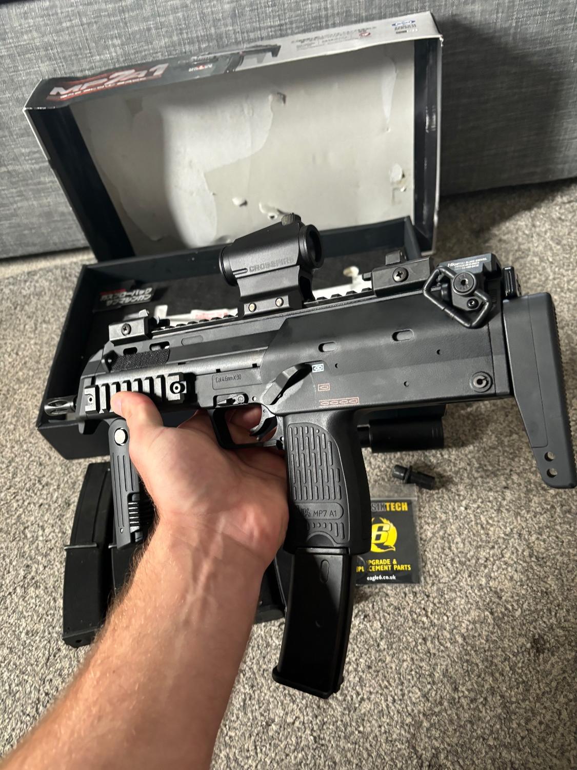 Up for sale is a ready to go tm mp7 gbb package. Plan was to use this over the warmer months but I haven't had time to play in a long time, so it's better off with someone who will use it. As you can tell just from the condition of the magazines, this has had minimal use with just the odd play in the garden.